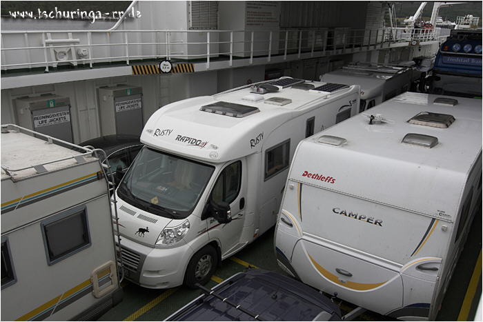 Unser Rusty auf der Fähre von Bognes nach Skarberget