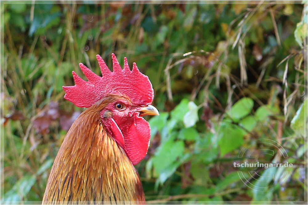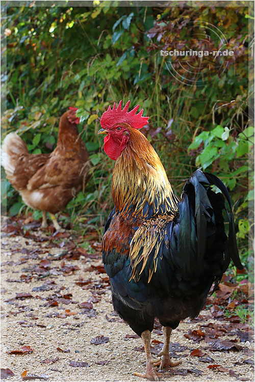 | Der Dorfhahn war mit seiner Henne unterwegs |