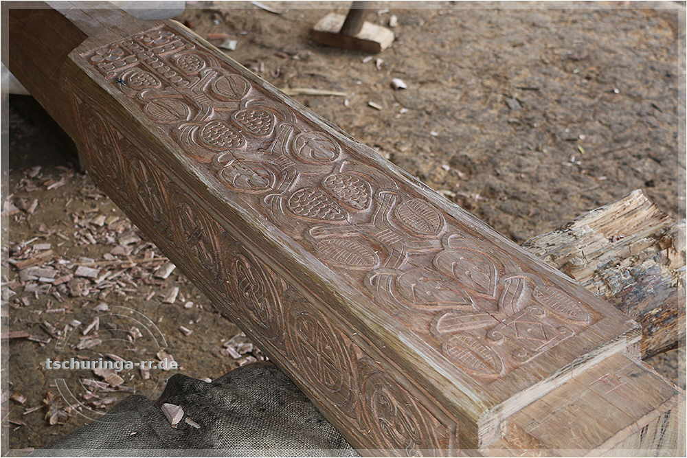 | Schnitzereien an den Säulen für die Kirche |