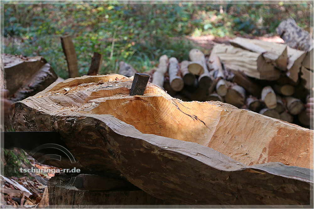 | Die Korbflechterei bekommt eine neue Mole (Wasserbassin, in dem die Zweige gewässert werden), die aus einem einzigen Stamm gefertigt wird. |