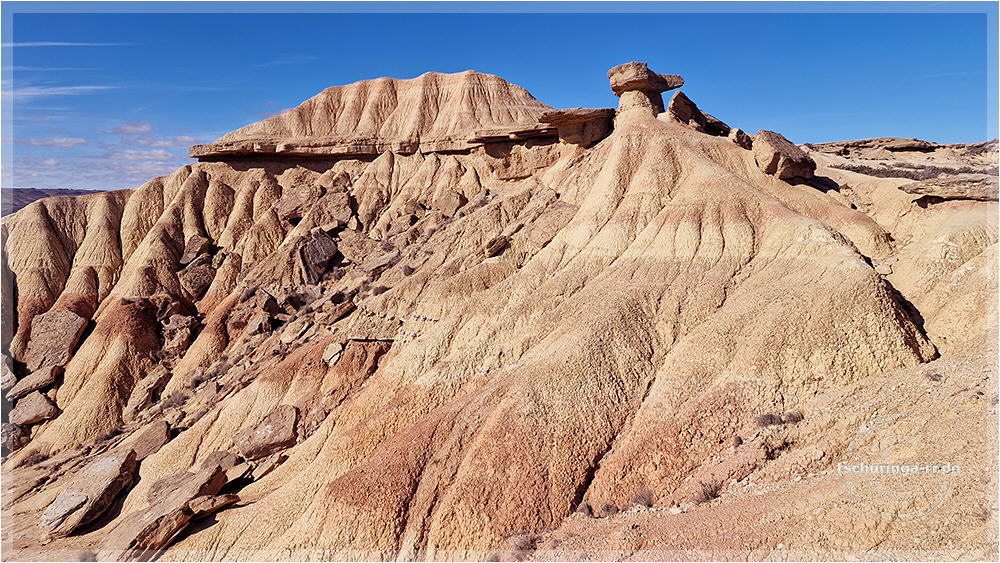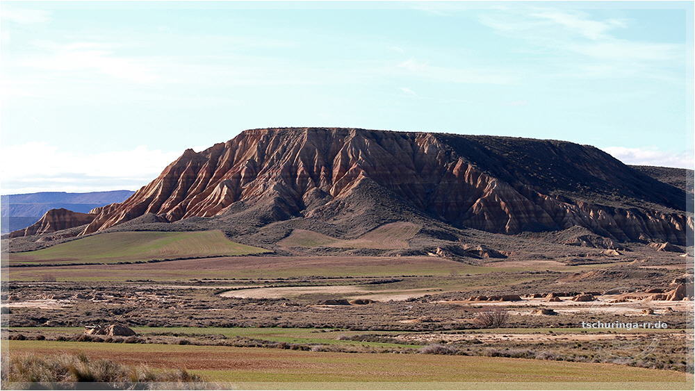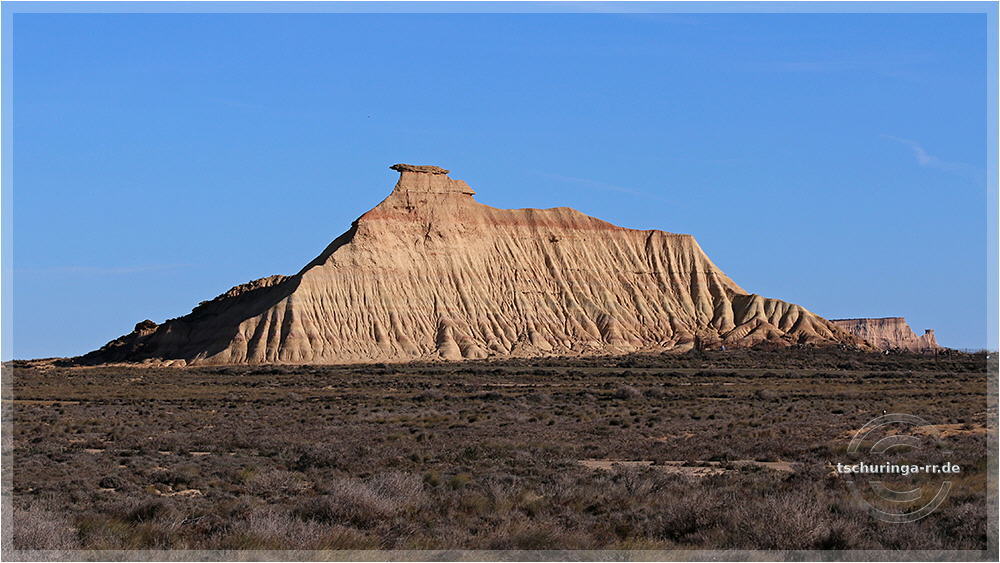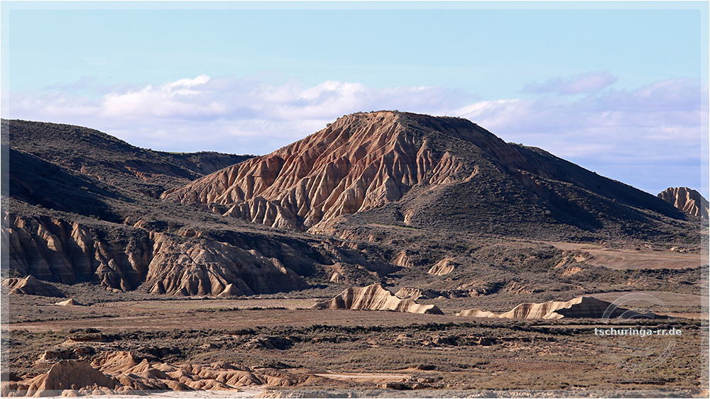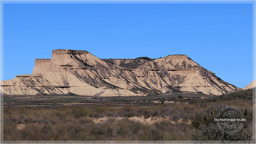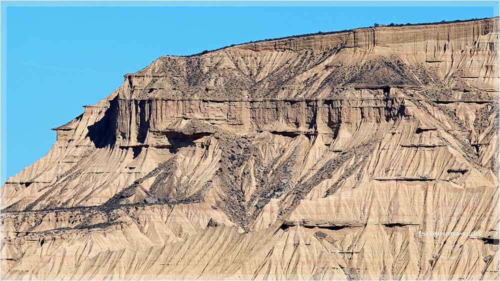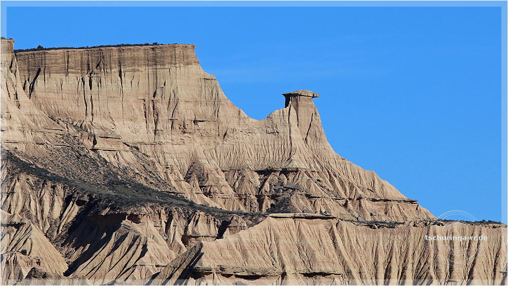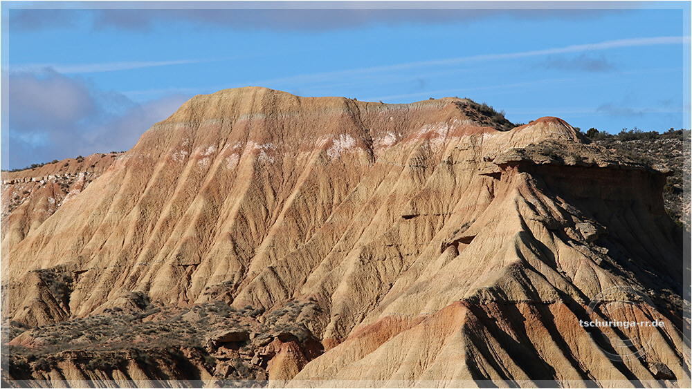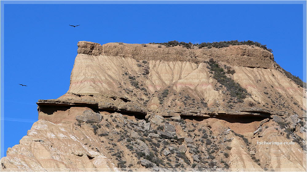 Beeindruckend ist die bizarre Landschaft, die zum größten Teil aus ockerfarbenem Lehm besteht. Typisch sind auch die Barrancos, die ausgetrockneten Flussbetten, sowie die Bergformen wie der Castil de Tierra. |