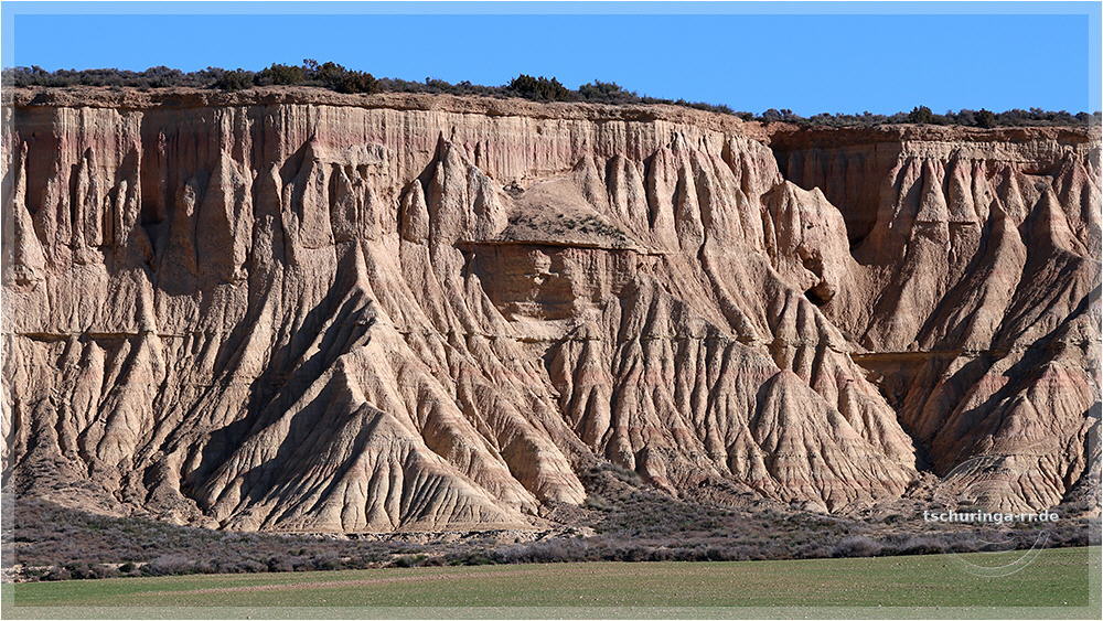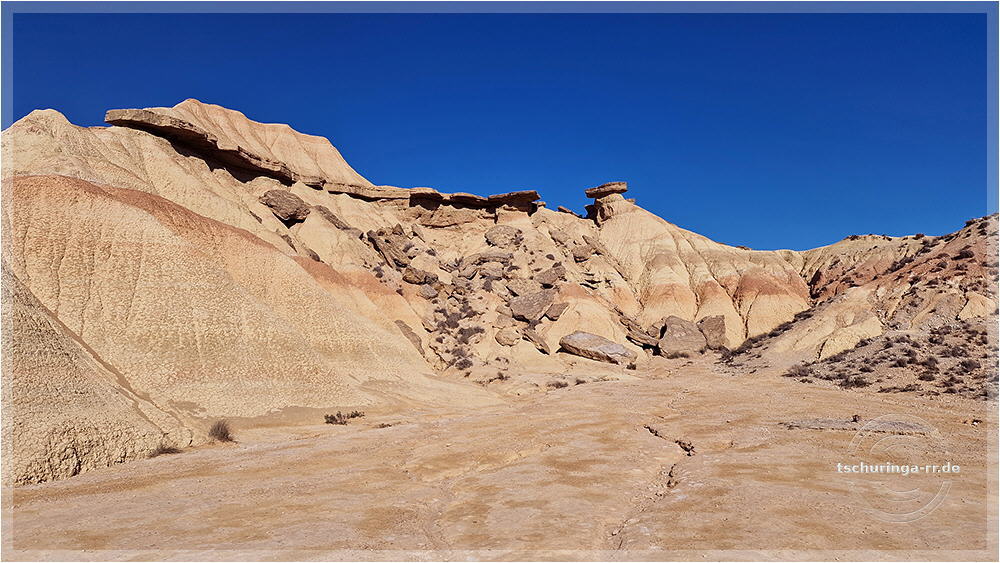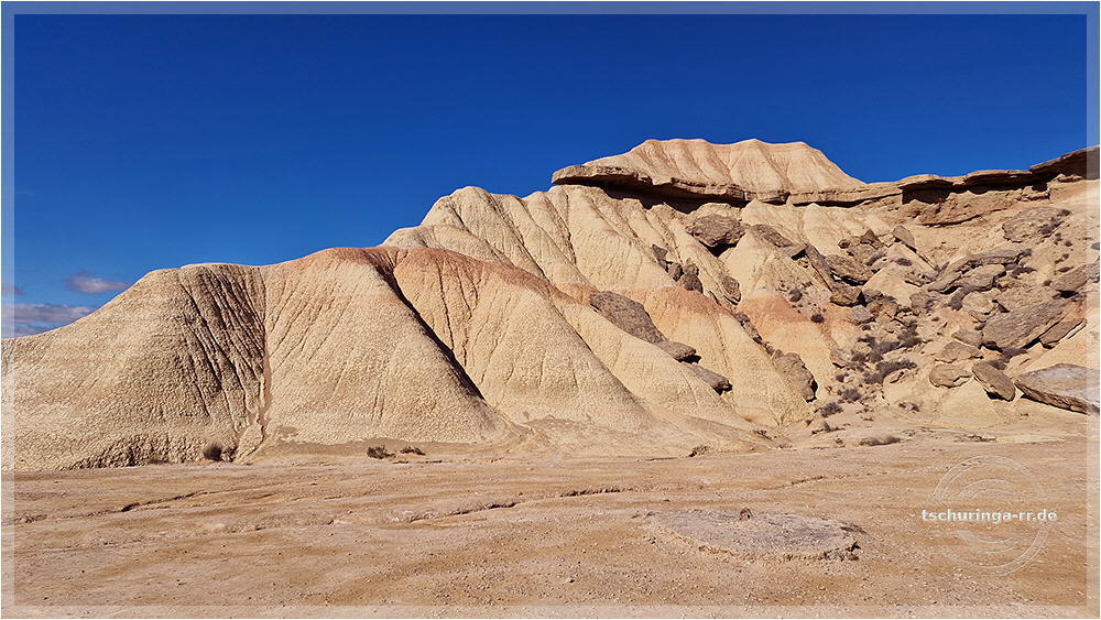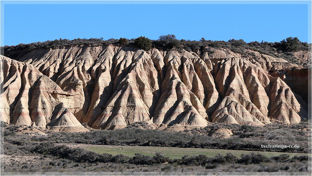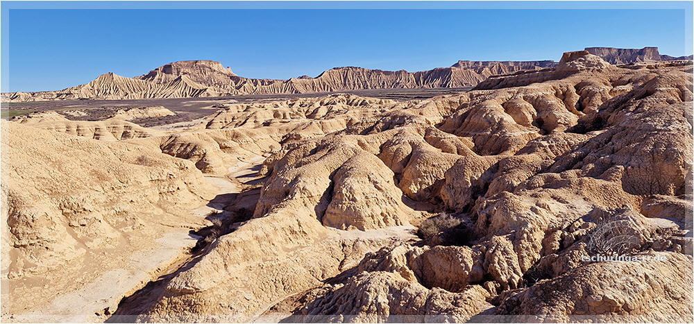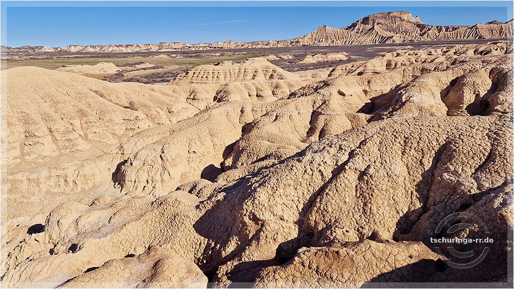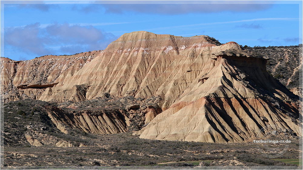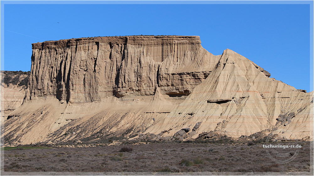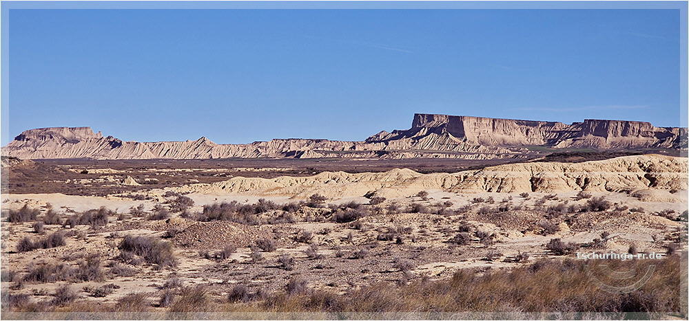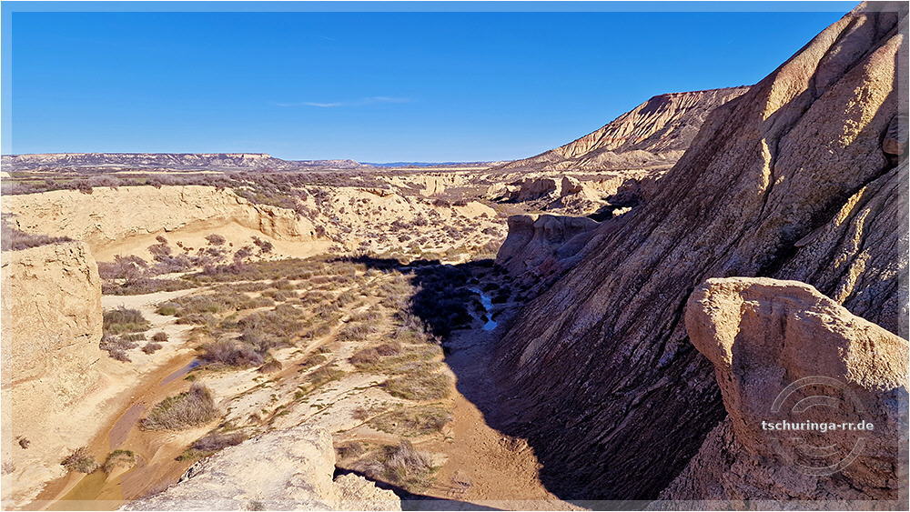 Beeindruckend ist die bizarre Landschaft, die zum größten Teil aus ockerfarbenem Lehm besteht. Typisch sind auch die Barrancos, die ausgetrockneten Flussbetten, sowie die Bergformen wie der Castil de Tierra. |