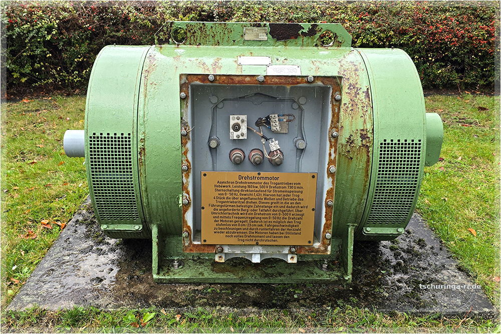 Vier solcher Drehstrommotoren treiben einen Trog an |