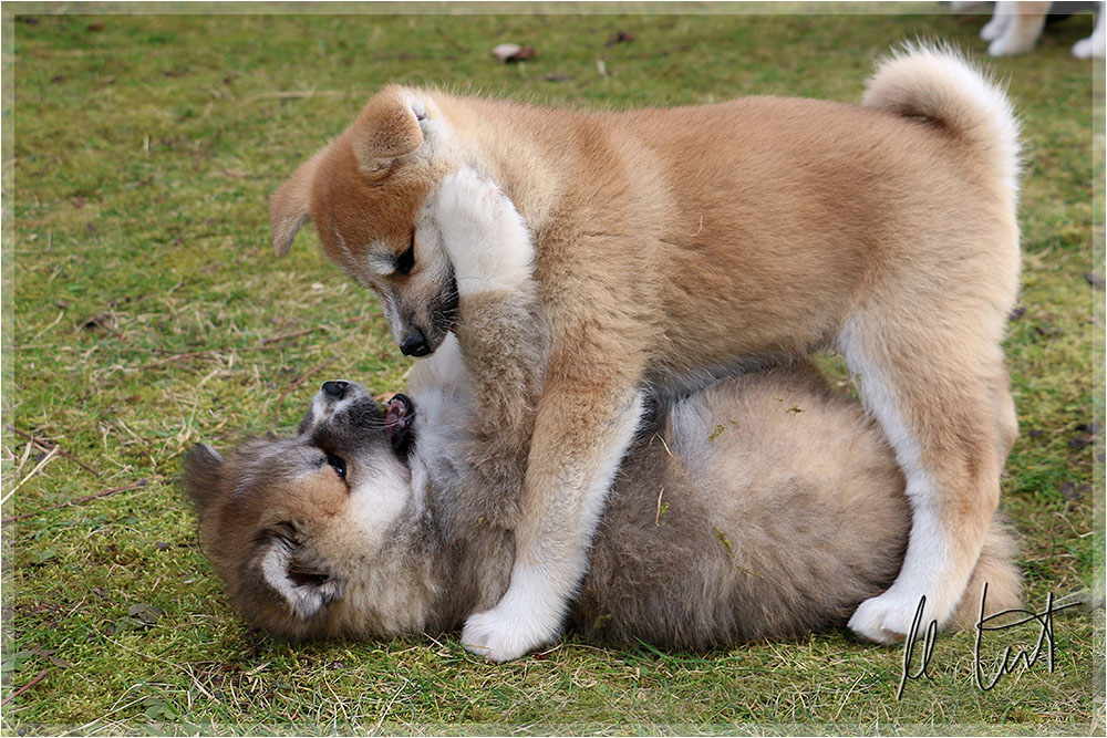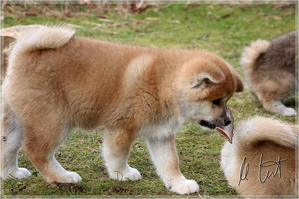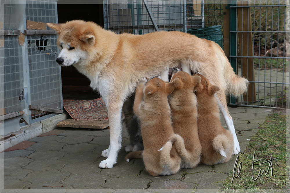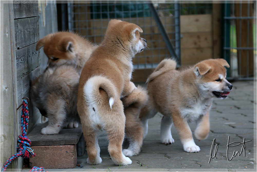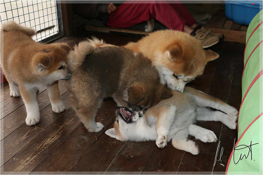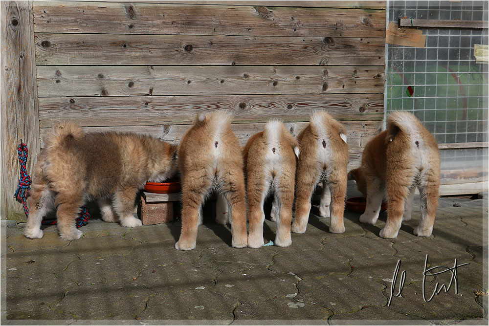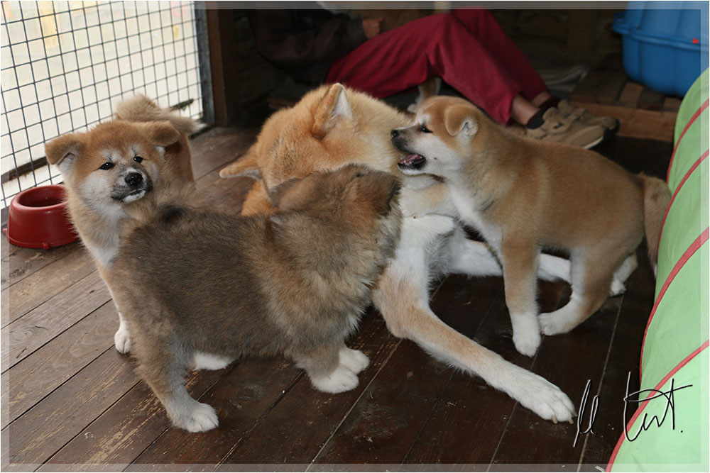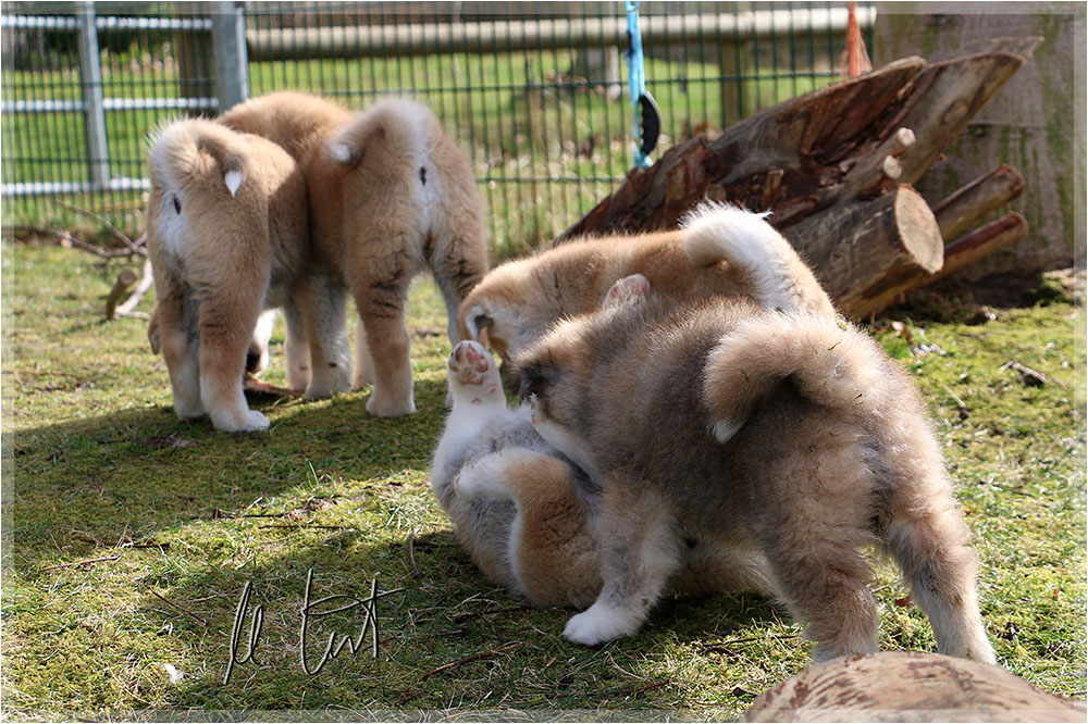 | Eine frühere Klassenkameradin von mir züchtet Akitas. Derzeit hat sie einen Wurf mit fünf Welpen liegen. |