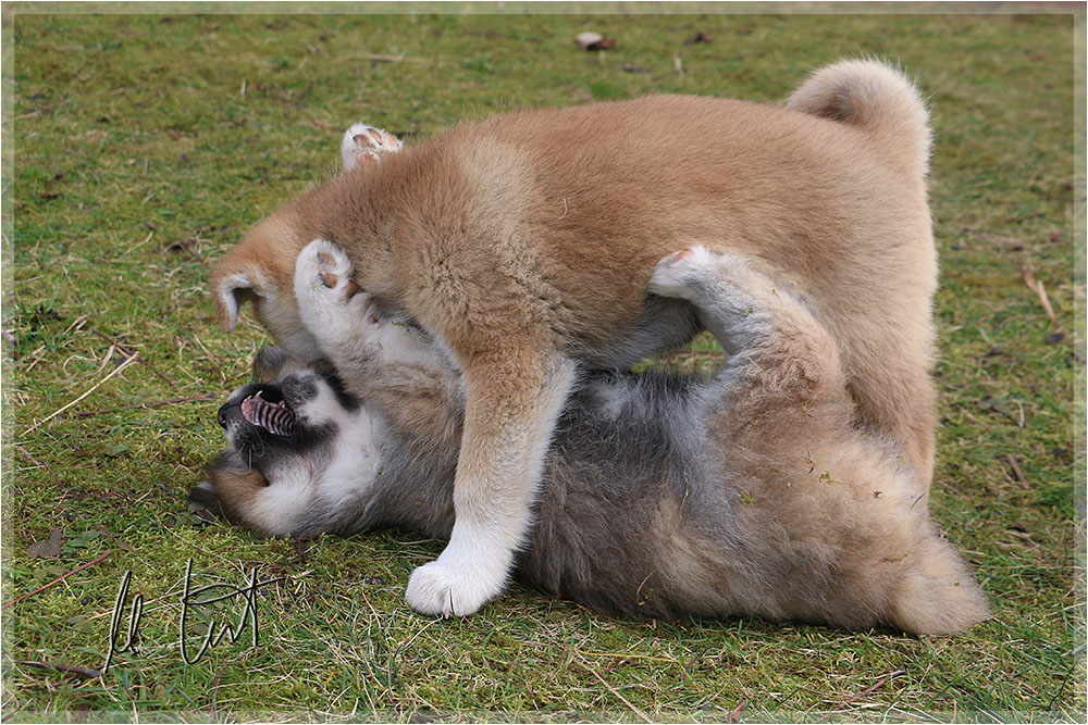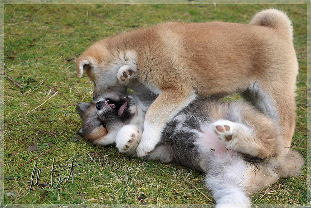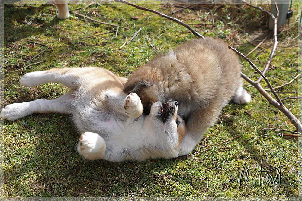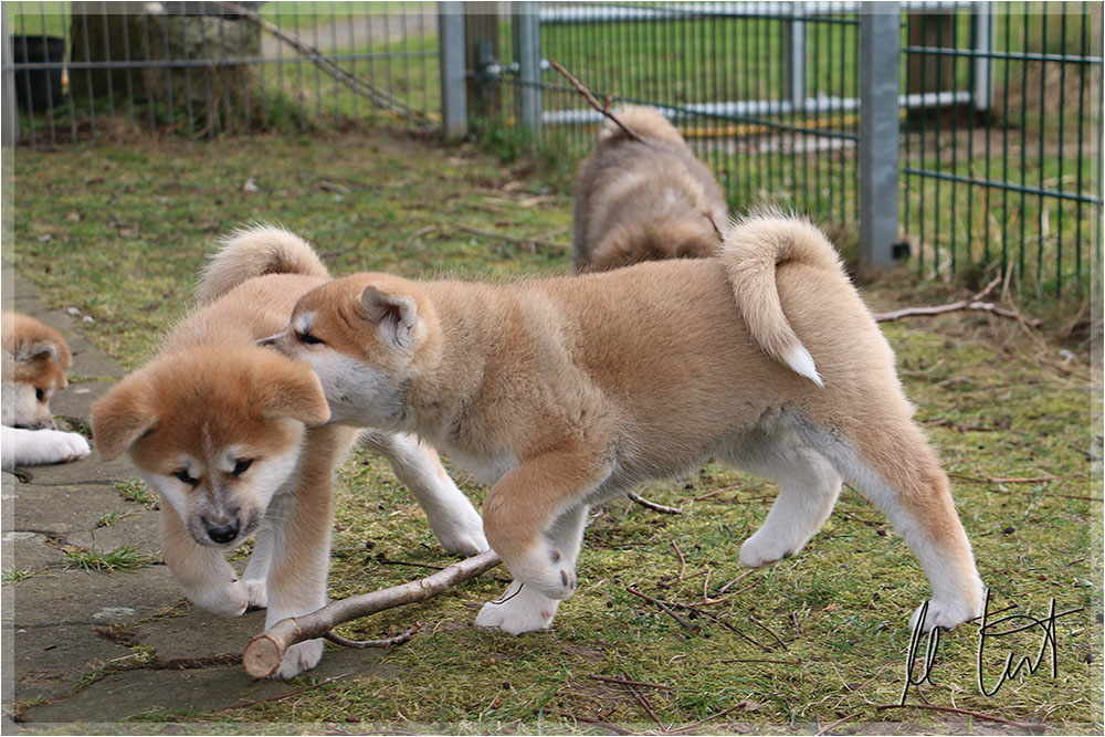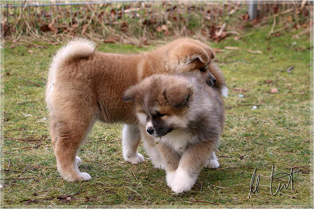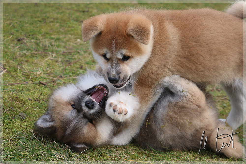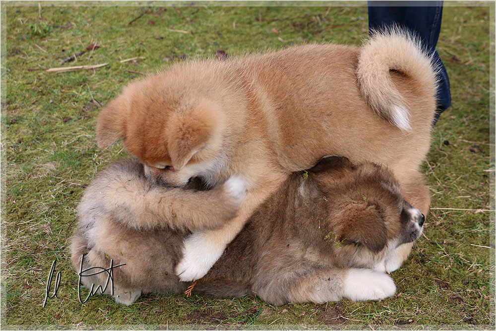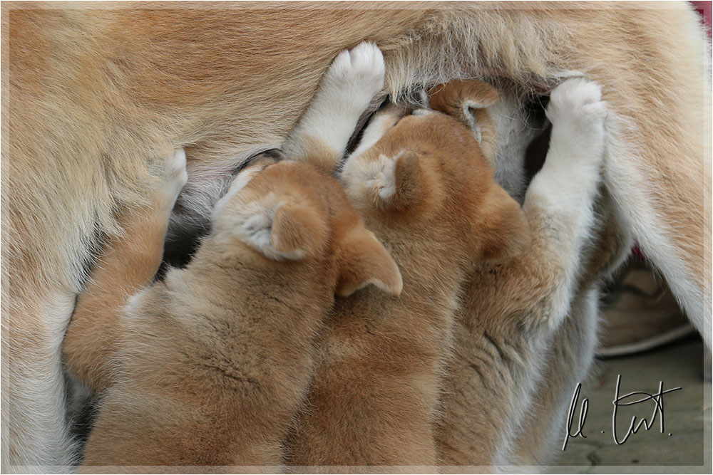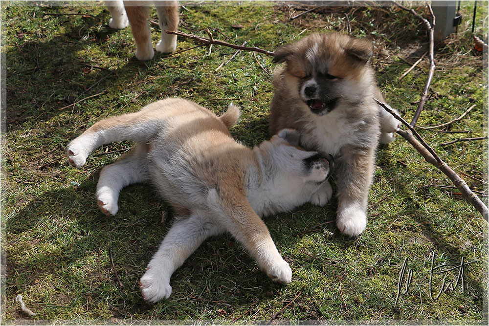 | Eine frühere Klassenkameradin von mir züchtet Akitas. Derzeit hat sie einen Wurf mit fünf Welpen liegen. |