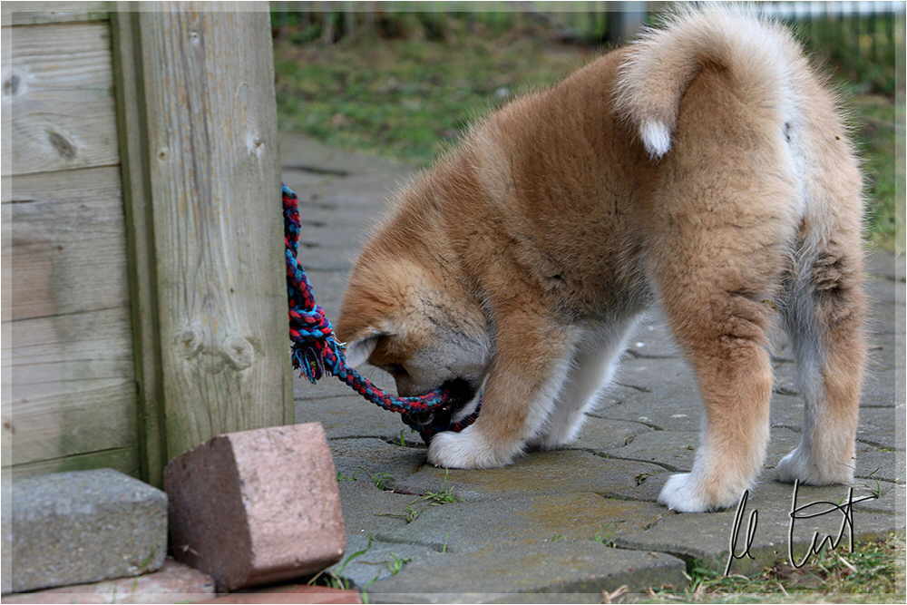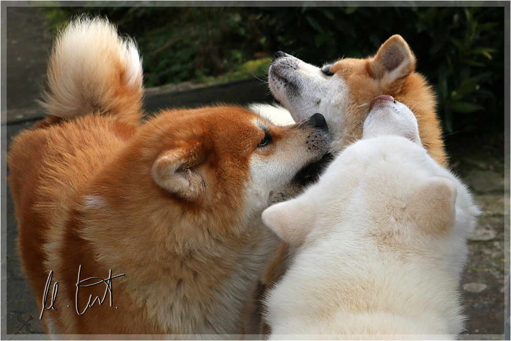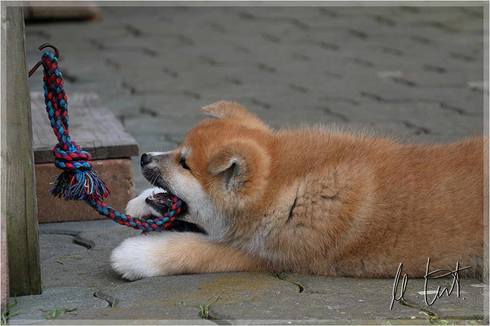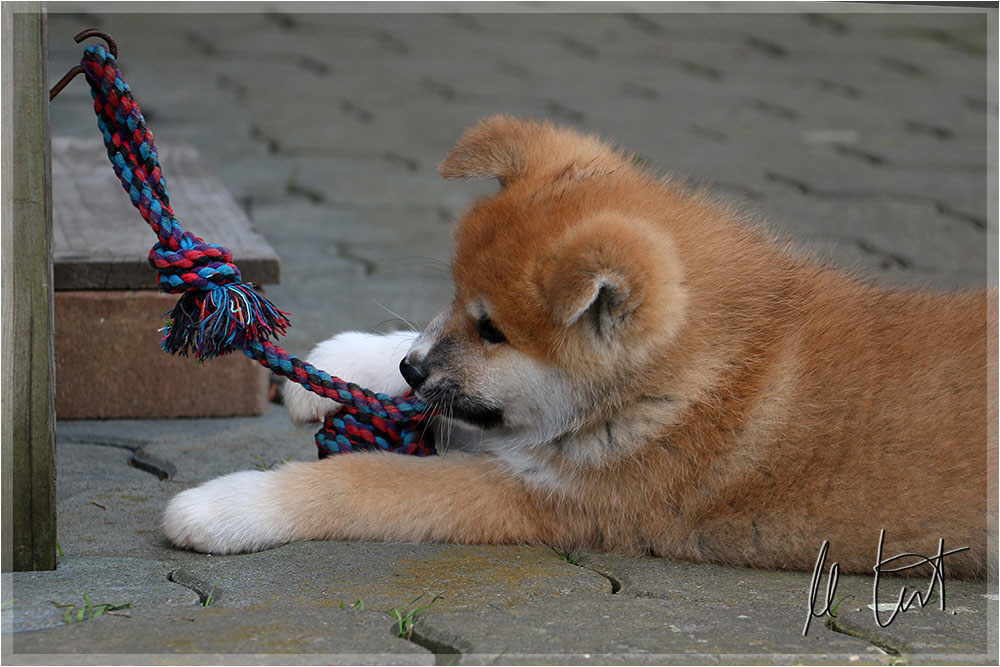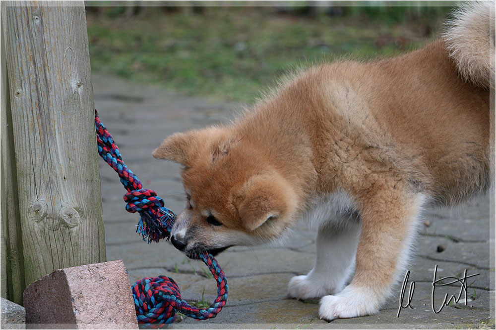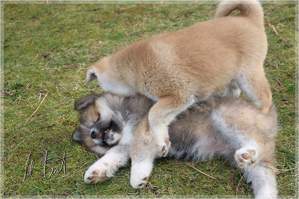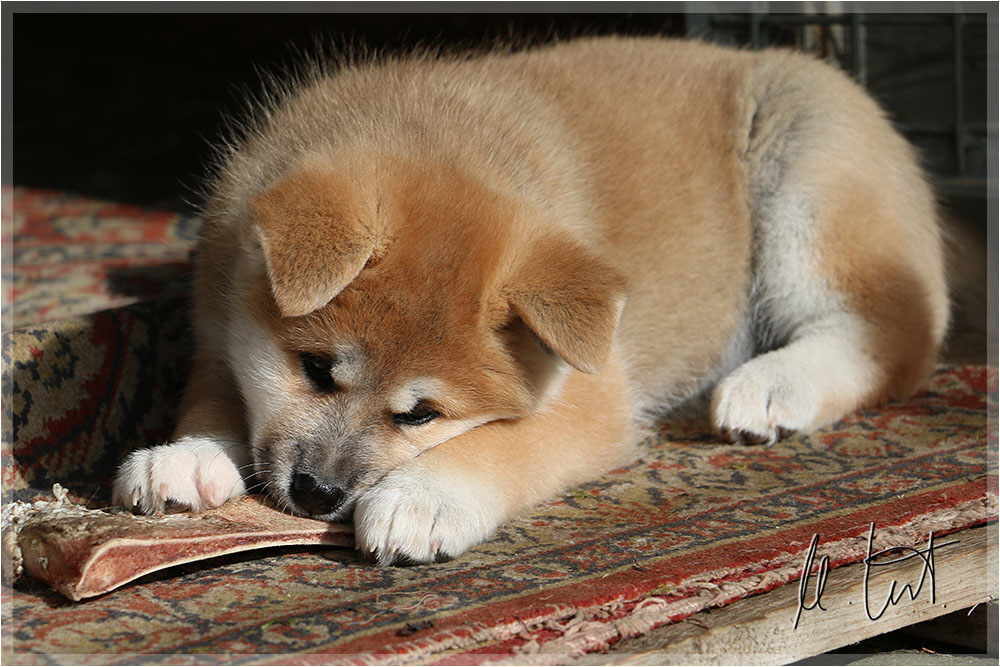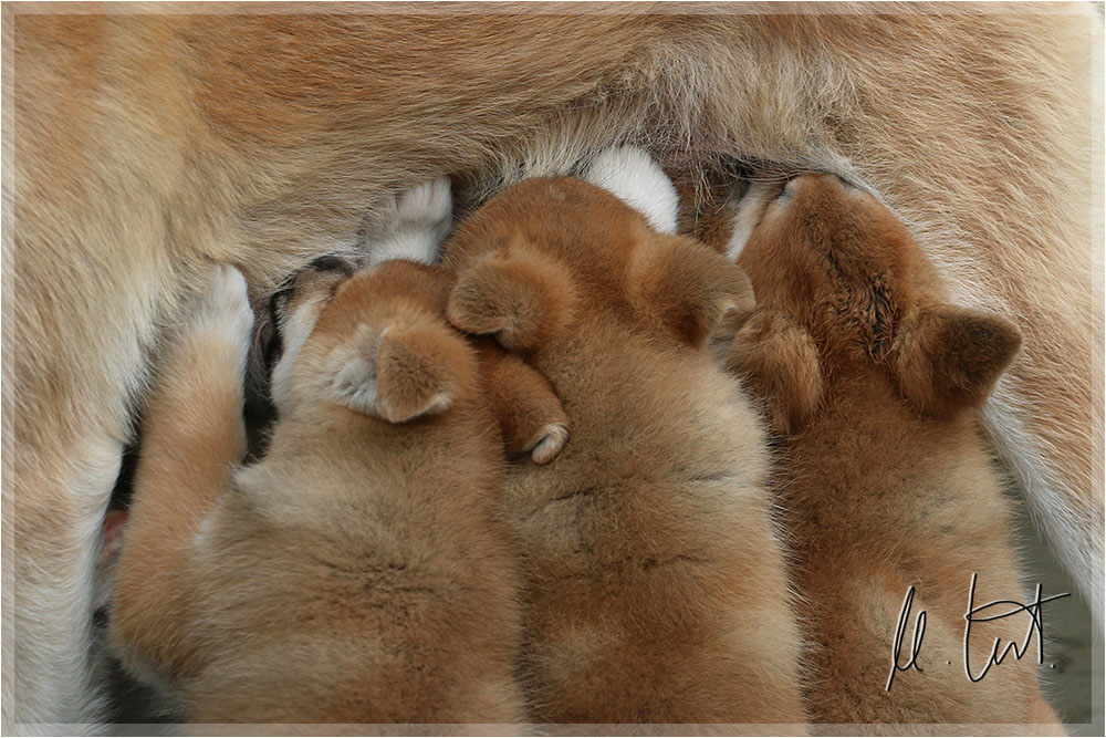 | Eine frühere Klassenkameradin von mir züchtet Akitas. Derzeit hat sie einen Wurf mit fünf Welpen liegen. |