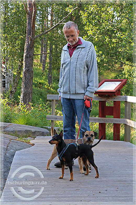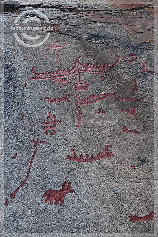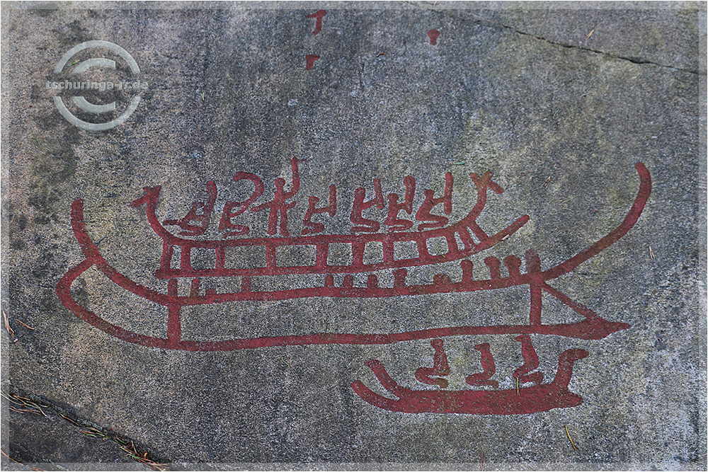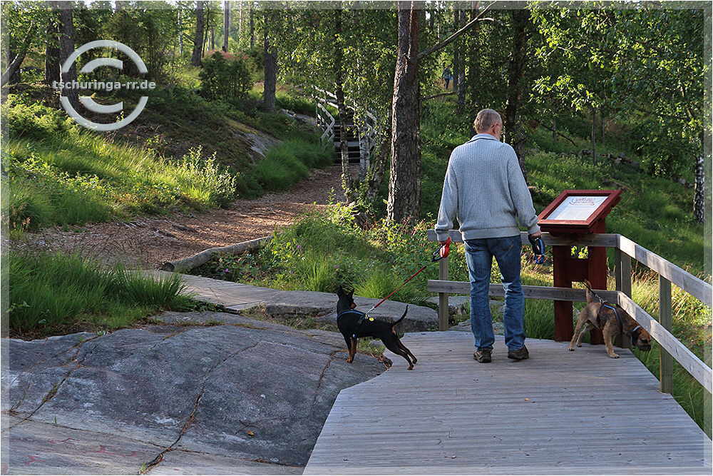 | Um 7:00 Uhr stehen wir wie geplant auf und erreichen die Fähre in Puttgarden unmittelbar vor der Abfahrt um 8:45 Uhr. Für das Kombiticket (einschließlich Fähre Helsingør - Helsingborg) zahlen wir 203 €. Oben auf Deck der Fähre in der Sonne genießen wir unser Frühstück in Form von leckeren Schokobrötchen der Bäckerei Rosenbaum aus Morsbach. Ab Dänemark stellen wir uns und das Navi darauf ein, sich peinlichst an die Höchstgeschwindigkeit gehalten wird. An der Fähre in Helsingør kommen wir um 12:15 Uhr an. Nach der Fähre geht es über die E20 und E6 zügig gen Norden. Nur Göteborg beschert uns etwas stockenden Verkehr. Auf die Felsritzungen von Tanumshede macht nun ein separater Rastplatz an der E6 besonders aufmerksam, den wir auch ansteuern. In Tanumshede statten wir den Felsritzungen nahe beim Museum noch einen Besuch ab. Tageskilometer 569 |