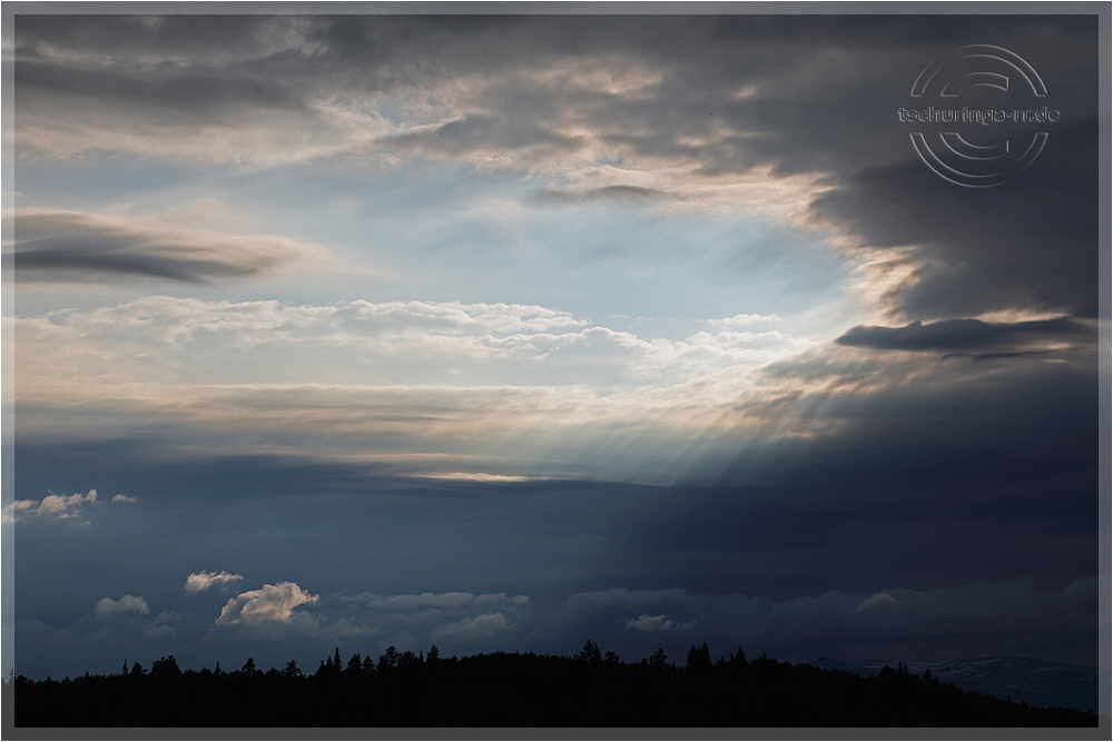 In entgegengesetzter Richtung sind die Wolken hell und vereinzelte wolkenlose
