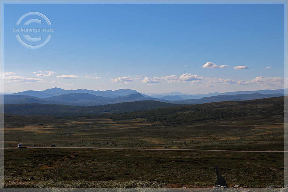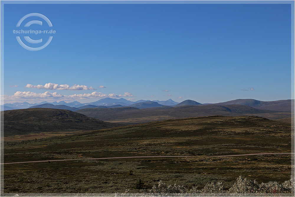 sich den Berg hinauf schlängelt. Oben wandern wir auf dem Rondanestien
