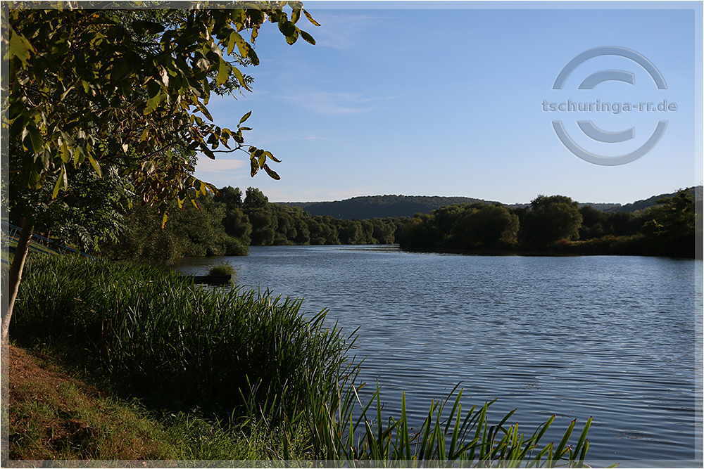 | Aussicht vom Stellplatz - Das Ufer ist allerdings ziemlich zugewachsen. | ||
