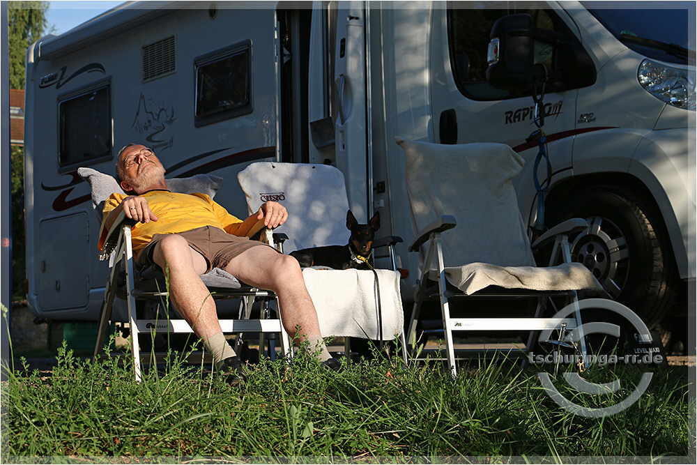 | Am Samstagmorgen geht es nach der Hunderunde und der Toilettenentsorgung endlich Richtung Urlaub in Frankreich. Wir fahren über Wasserbillig, wo noch mal getankt wird, bis Millery. Dort übernachten wir auf dem Stellplatz direkt an der Mosel. Der Spaziergang fällt wegen mangelnder Möglichkeiten recht kurz aus. Aber nach den anstregenden Messetagen und einer recht langen Fahrt relaxen wir in der Sonne. Tageskilometer 393 |