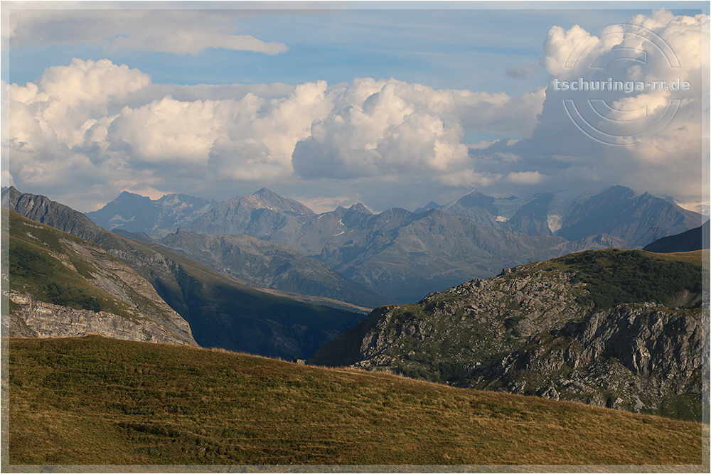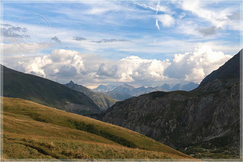 | Ausblicke von unserem Stellplatz am "Cormet de Roselend" | ||