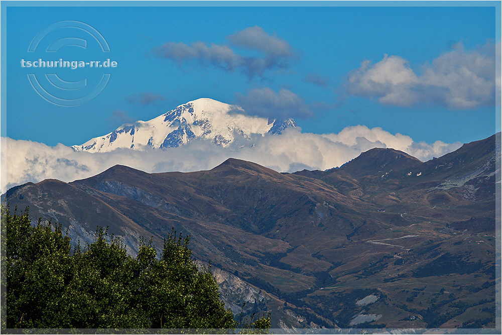 | Während der Abfahrt vom "Col de la Madeleine" bekommen wir noch einmal die Sicht auf den "Mont Blanc" | ||