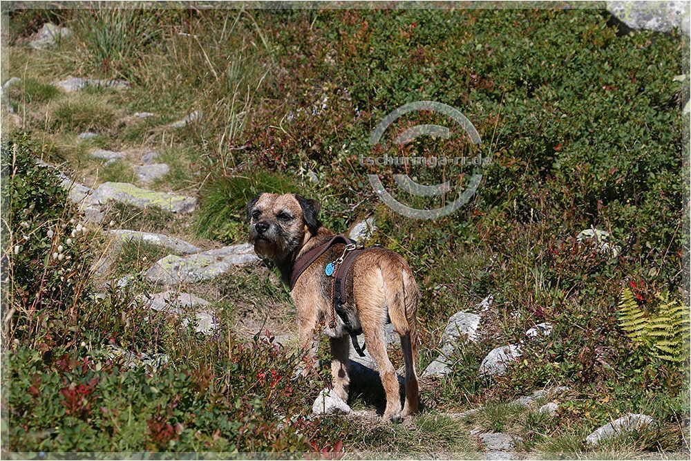 | Lennox genießt die Wanderung am "Col de la Madeleine" | ||
