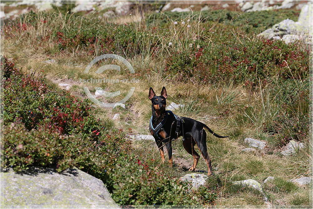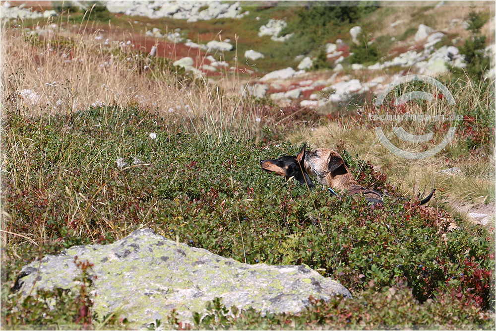 | Yukon auf der Wanderung am "Col de la Madeleine" | ||