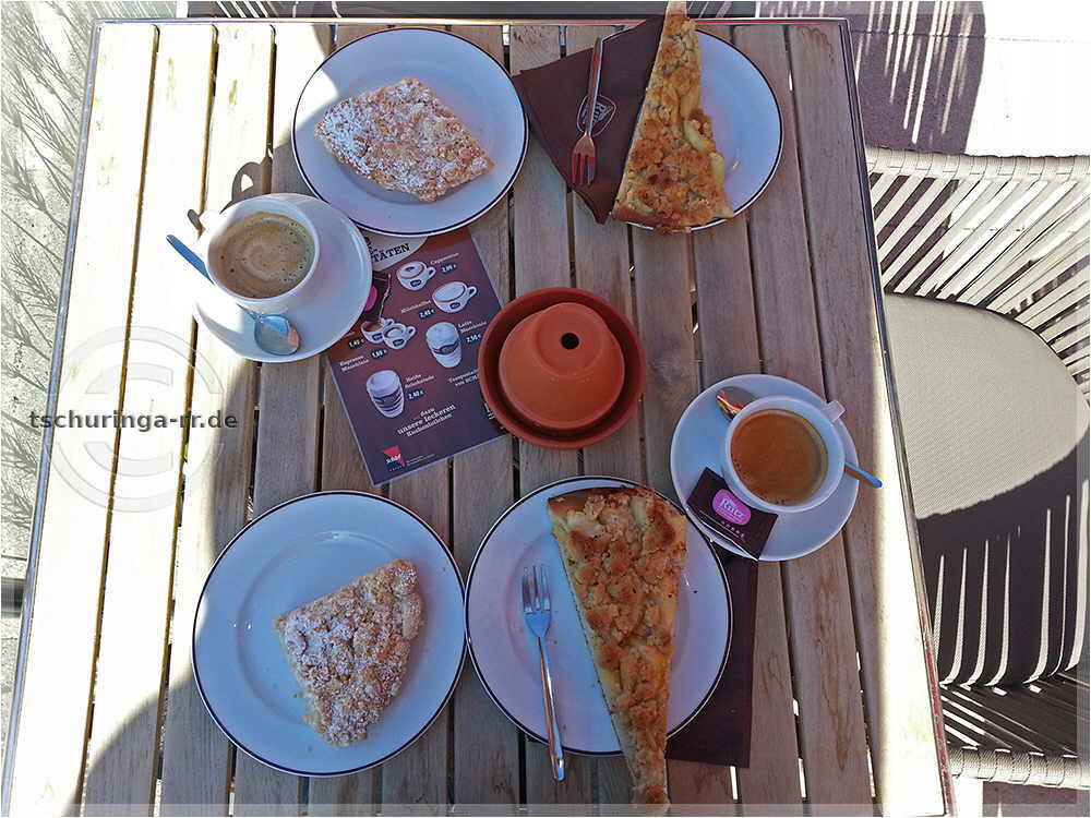 Kurz nach 12:00 Uhr kommen wir in Bad Schönborn an. Vom Stellplatz gehen wir in die Stadt und wollen uns zum Abschluss unseres Urlaubs Kaffee und Kuchen gönnen. Doch die meisten Bäckereien und Geschäfte haben hier im deutschen Kurort mittags geschlossen. Da kommt uns die heutige Neueröffnung Cafe/Bäckerei Rutz gerade recht. Wir suchen uns jeder zwei große Kuchenstücke aus, so groß, dass die auf zwei Desserttellern serviert werden müssen. Vor dem Bezahlen habe ich die Gelegenheit durch Würfeln von drei Sechsen in maximal drei Versuchen, nichts bezahlen zu müssen. Nach dem ersten Wurf habe ich bereits zwei Sechsen, im zweiten eine vier und im dritten kam tatsächlich die dritte Sechs – yippi yeah, unsere Kaffeerunde ist "für lau". Auf dem Wohnmobilstellplatz herrscht reges Treiben, so dass über eine Stunde Plaudern vergehen, bis wir endlich unsere Wanderung starten. Hier gibt es viele Wander- und Radwege. Den Stellplatz werden wir uns für die Zukunft merken. Nach der Wanderung genießen wir die Sonne faulenzend in den Campingstühlen. Tageskilometer 172 |