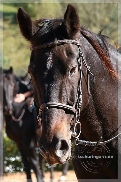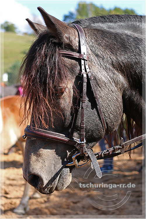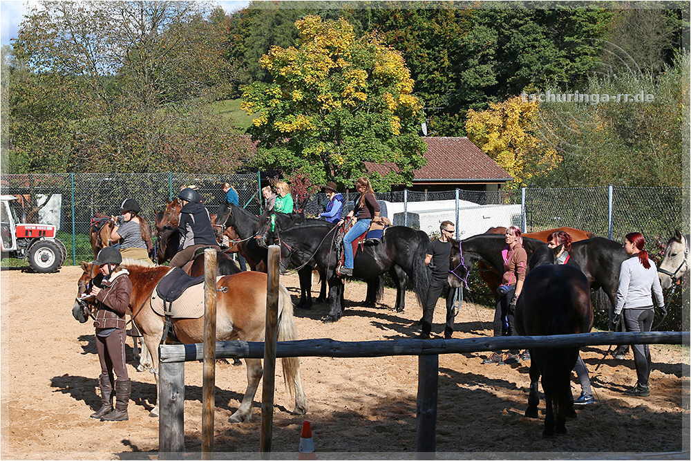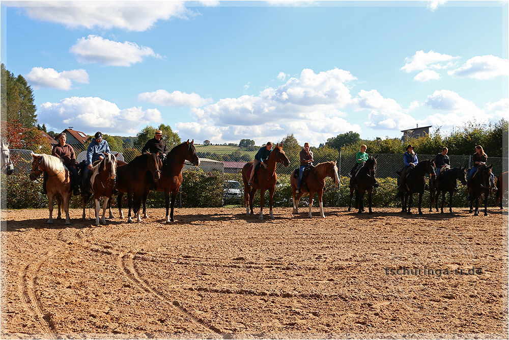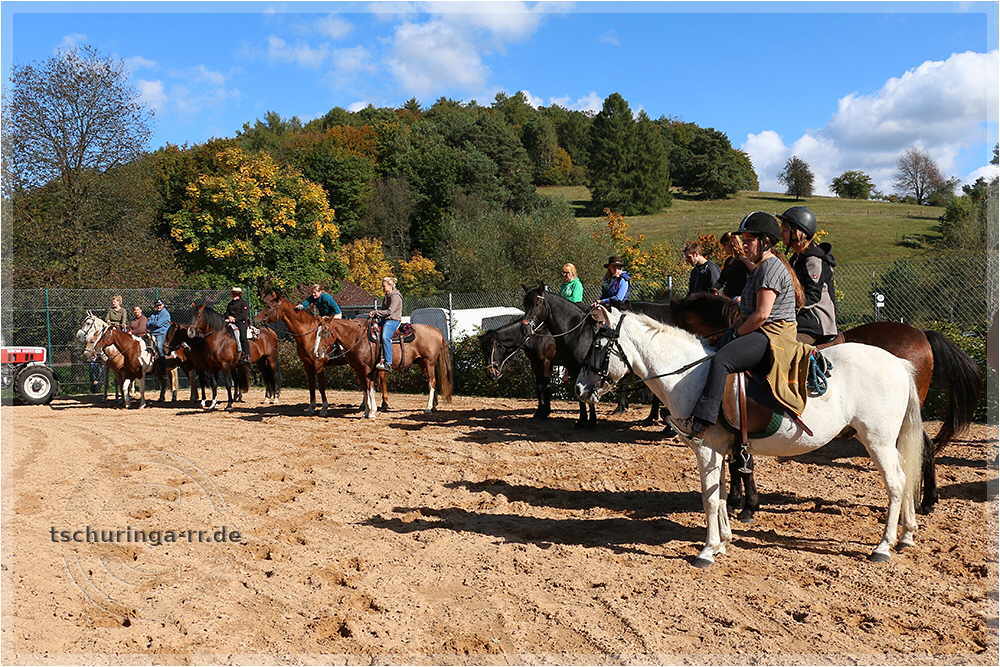 Pferde trudeln so langsam auf dem kleinen Reitplatz ein, der bereits für