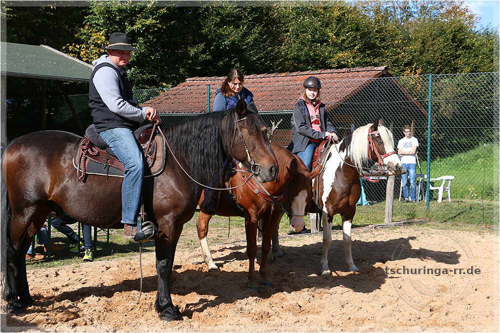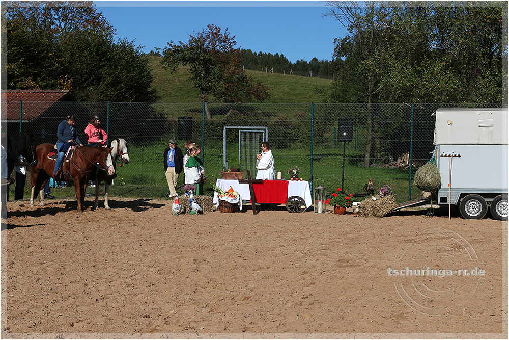 | Auf dem kleinen Reitplatz neben dem Stellplatz findet heute eine Pferdesegnung statt. Nach einem anderthalbstündigem Ausritt treffen | ||