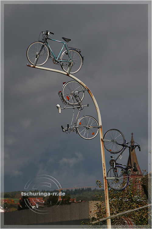 | Derselbe Garten: Auch eine Methode alte Fahrräder zu verwerten. | ||
