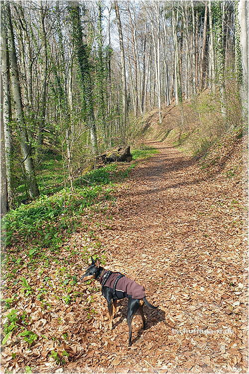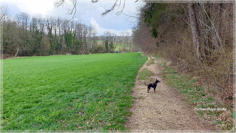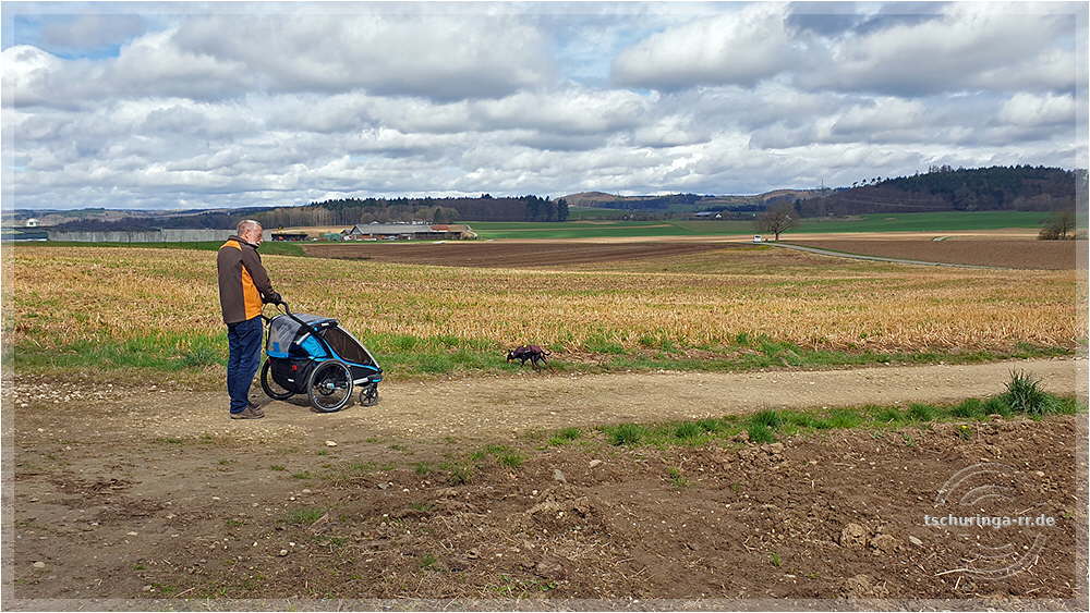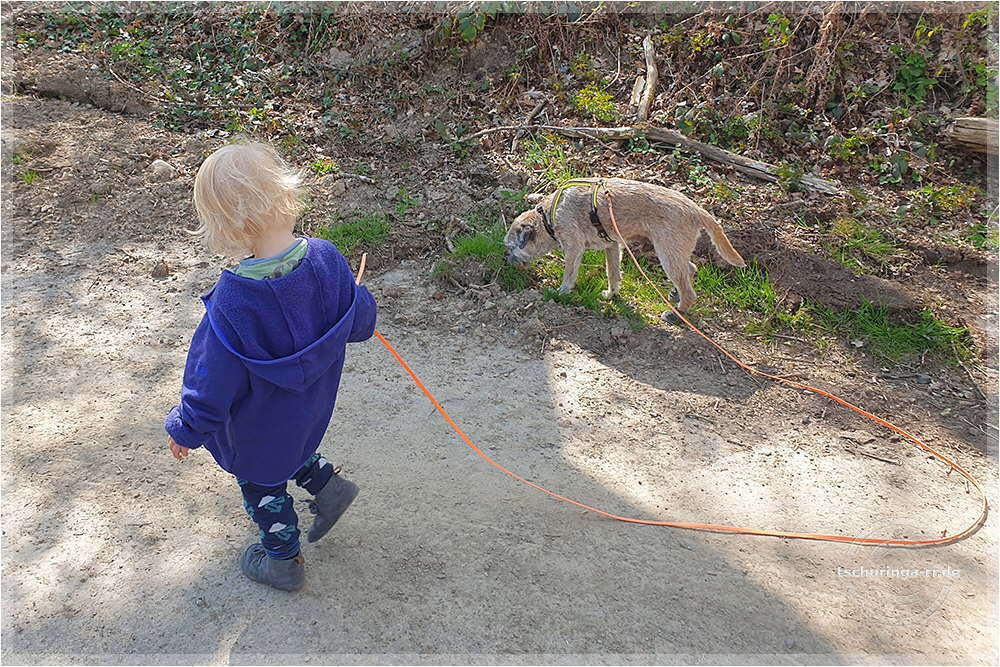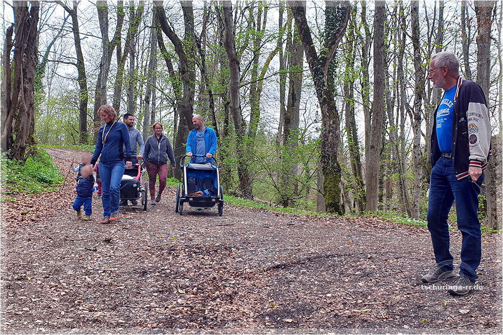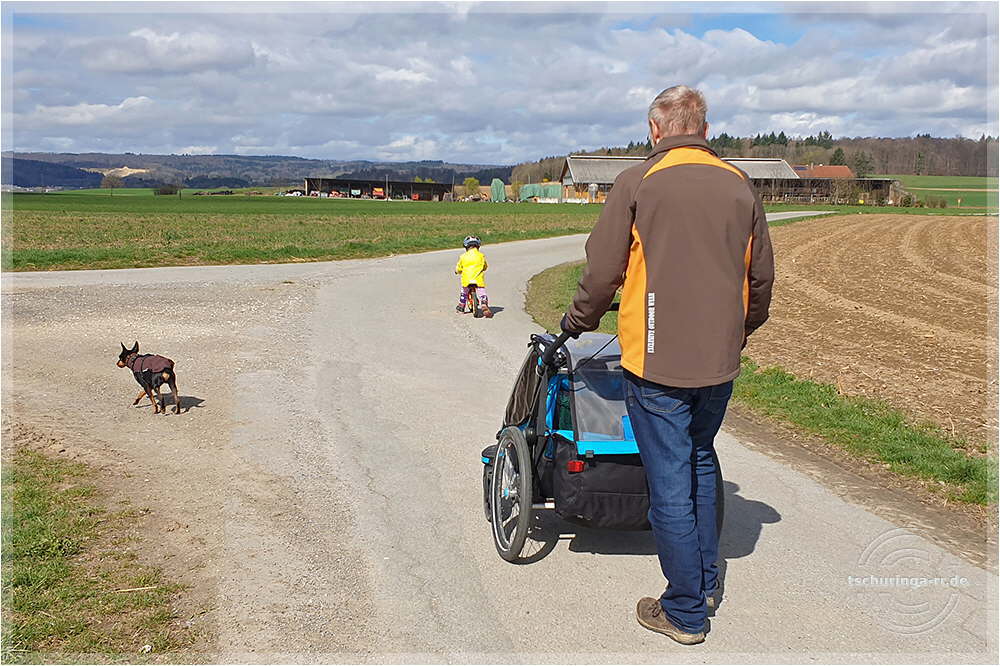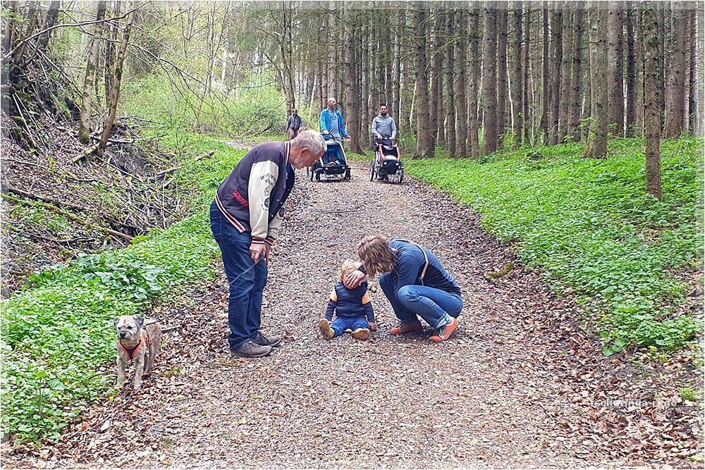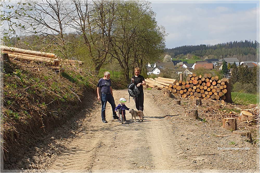 Friedbert hat heute Morgen "Enkeldienst". Schon vor dem Frühstück geht er rüber und bespaßt die zwei Kids, während deren Mama arbeiten muss. Die hat Homeoffice und kann im Notfall helfen. Aber das ist nicht nötig, denn auch Ruben findet den Opa gar nicht schlecht. Ist der doch für jeden Blödsinn zu haben. Für mich bedeutet das, dass ich nicht früh aufstehen muss und es mir mit meinem Tee noch im Wohnmobil gemütlich machen kann. Irgendwann ist es an der Zeit, dass Ruben "eingeschläfert" werden muss, denn der ist ziemlich quengelig und bekanntlich kommt ja nach müde doof. Da der am besten im Kinderwagen ratzt, geht Friedbert mit Ruben im Kinderwagen und Rieke mit ihrem Laufrad auf die Piste. Die Jungs waren heute noch nicht draußen, also schließen wir uns an und laufen eine große Runde durch die Felder, beim Bauern vorbei und einen Feldweg hoch, damit auch Yukon in den Genuss des Freilaufs kommt, den er mit ordentlich Toben auch gleich ausnutzt. Nach dem Mittagessen haben wir "frei" und fahren ein paar Kilometer, wo wir anschließend im Bärlauchparadies laufen. Ein Weile wandern wir den Berg hoch, bis es irgendwann ziemlich matschig wird, obendrein richtig schwarze Wolken im Hintergrund zu sehen sind und Yukon merklich überfordert ist. Also drehen wir um. Natürlich nehmen wir auch Bärlauch mit. Den kann man ja nicht einfach sich selbst überlassen. |