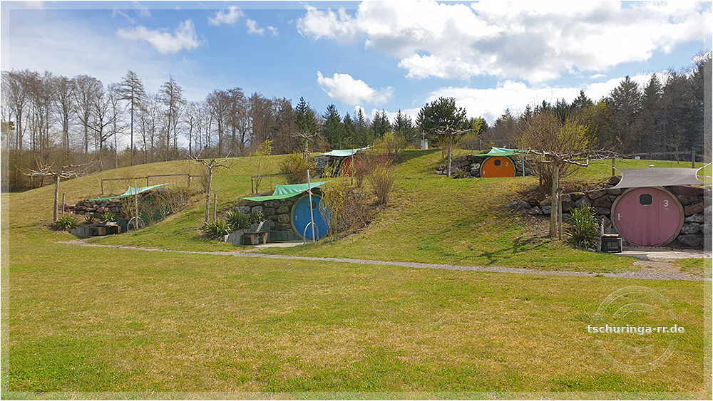| Schlaffässer auf dem nahegelegenen Campingplatz | ||