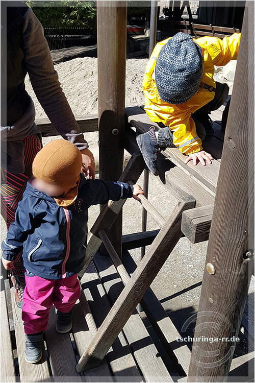 | Ruben kommt mit dem Bergablaufen nicht gut klar und ist ziemlich gefrustet. Mama muss trösten. | ||