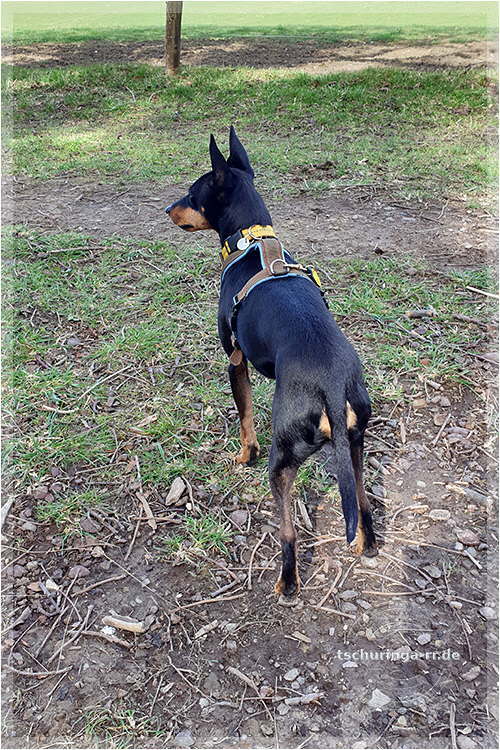 | Während Frauchen die Skulpturen fotografiert... | ||