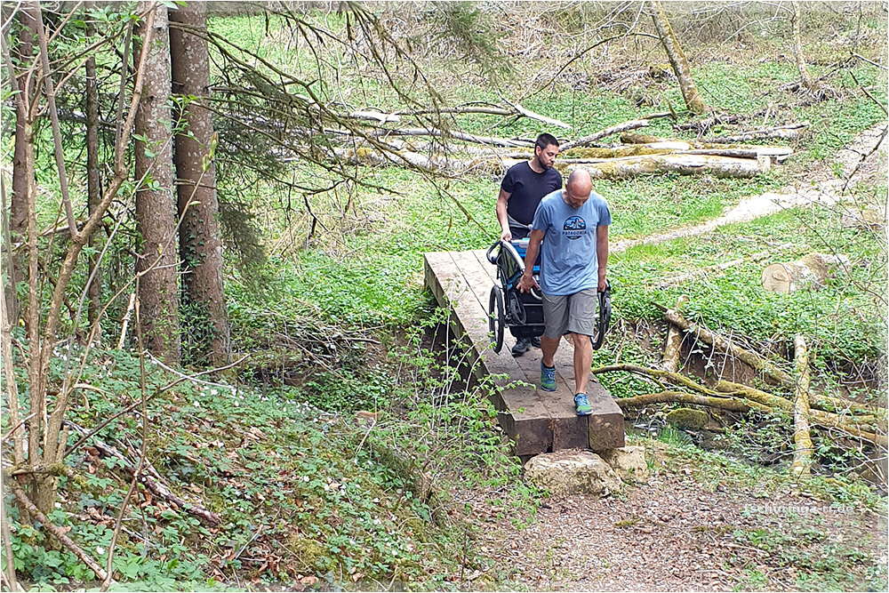 Durch die Vorbereitungen gestern sind wir zeitig unterwegs. Der Anhänger ist schnell angekoppelt und es geht weiter Richtung Grenze nach Deutschland. Auf dem Stellplatz von Chavannes-sur-L'Étang sind wir ganz alleine. Nach dem Mittagessen laufen wir den 750 Meter langen Rundweg durch das Aboretum des Fosses, welches in einem Feuchtgebiet liegt. Eigentlich wollen wir noch außerhalb des Waldgebietes weiter wandern, aber da bläst uns der Wind so eiskalt in Gesicht, dass wir fix wieder umdrehen und lieber im Wald noch eine weitere Runde laufen, nur andersrum. |