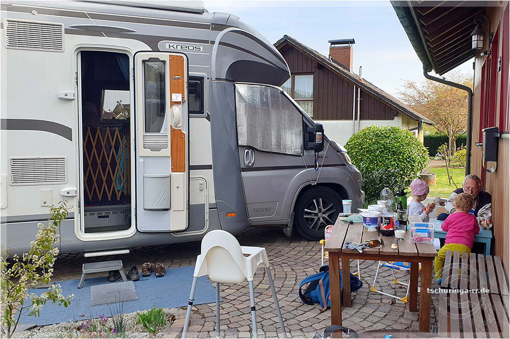 Um kurz vor halb neun kommt bereits der Techniker zum Wohnmobil. Wir berichten ihm, dass wir das Problem gestern Abend noch selber beseitigen konnten und fragen, womit das zusammen gehangen könnte. Er erklärt uns, dass es möglich ist, dass die Gasflamme, aus welchem Grunde auch immer, nicht zünden konnte. Das wird dann drei Mal versucht und danach gibt es Alarm. Es könnte Luft in der Leitung gewesen sein, wobei das komisch wäre, denn es ist ja nichts verändert worden. Jedenfalls muss man dann diesen "Resetknopf" drücken, denn ohne startet der Kühlschrank auf Gas nicht. Okay, wieder was dazu gelernt. Wir fahren noch an die Entsorgung und hängen den Trailer an den Panda. Dann geht es heimwärts. Ich halte noch kurz beim Lidl an, denn für heute Nachmittag hat sich Kilian mit Familie angekündigt und so sehen wir unser fünftes Enkelkind gleich heute wieder. Friedbert hat das Wohnmobil bereits auf seinem Platz abgestellt und wir bringen die ersten Sachen nach oben. Die Waschmaschine wird auch gleich angeworfen. Kurz nach dem Mittagessen kommen bereits die Kinder an. Lea muss für ihre Ausbildung lernen und so gehen wir mit Kilian und Lotta eine kleine Runde spazieren. Leider müssen wir feststellen, dass unser toller Weg so gar nichts mehr für Yukon ist. Nach den Baumfällarbeiten wurde der Weg neu geschottert und Yukon muss die ganze Zeit mit festen Schuhen laufen. Das geht definitiv nicht jeden Tag. Heute ist der letzte Tag unserer Wintertour. 90 Tage unterwegs, viel gesehen, viel erlebt. Toll war es. Jetzt machen wir ein paar Wochen Pause und dann geht es hoffentlich wieder los. |
