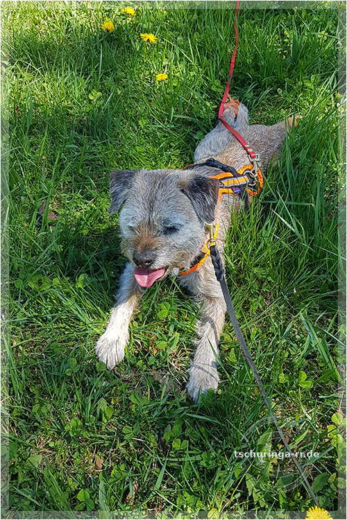 | Zweite Picknickpause - Friedbert und Yukon warten geduldig | ||