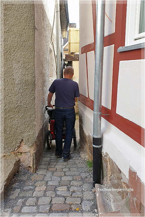 | Enge Gasse. Allerdings stehen wir anschließend in einem Hinterhof |