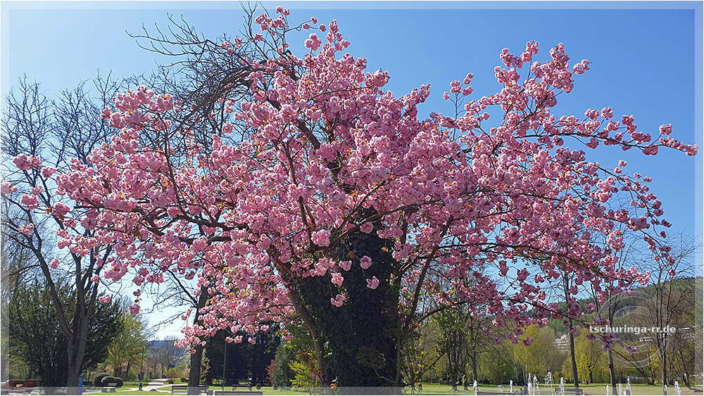 Heute geht es nach Bad Soden-Salmünster, denn morgen haben wir einen Termin bei einer Waschanlage, bei der wir unseren Manni waschen lassen wollen. Mal schauen, wie teuer es wird und wie gut sie es machen. Wir kommen bereits gegen 11:00 Uhr an dem gerade wieder neu eröffneten Stellplatz an. Der liegt direkt neben dem Kurpark. Um das Ticket zu kaufen müssen wir erstmal 650 Meter durch den Park zur Therme laufen. Für 7 € pro Nacht incl. Kurtaxe kann man aber nicht meckern. Erst recht nicht für einen Kurort. Wir lassen uns Zeit und bummeln auf Umwegen zurück zum Wohnmobil. Nach dem Mittagessen sitzen wir noch faul in der Sonne. So richtige Wanderlust kommt nicht auf. Als Ausgleich wandern wir ohne Hunde zu der etwa dreihundert Meter entfernt liegenden Eisdiele und gönnen uns ein leckeres Nusseis. Danach brechen wir doch noch zu einer großen Runde durch den Park auf. An einer leeren Parkbank machen wir Pause und genießen die herrliche Sonne. |