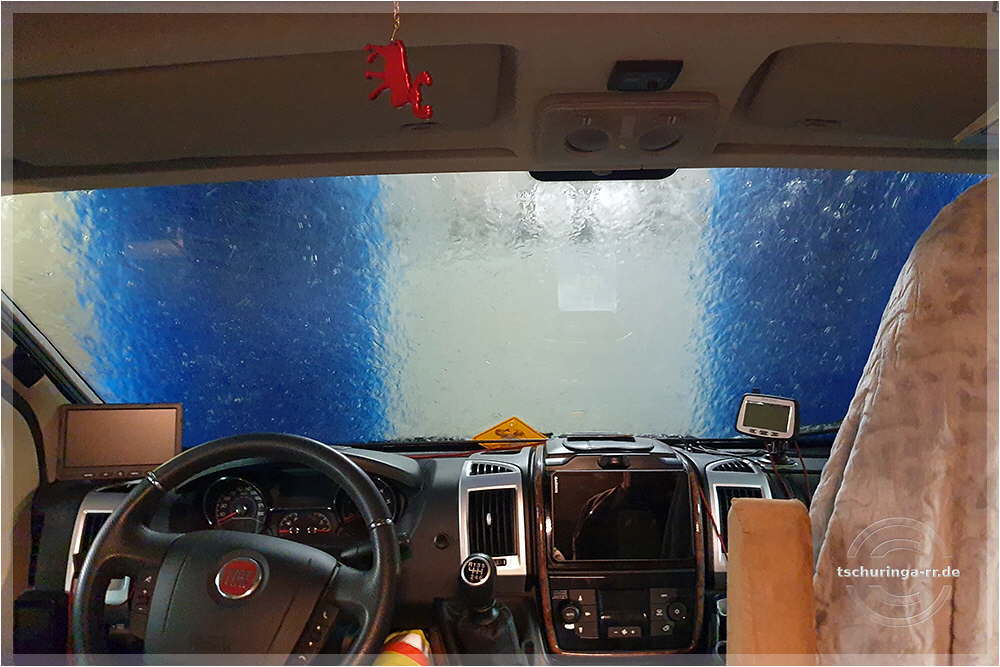 Gestern haben wir erfragt, ob wir das Waschen mit Karte bezahlen können, was leider verneint wurde. Also müssen wir heute Morgen noch Bargeld holen. Bei Lidl geht das super. Wir fahren also noch kurz zum Lidl und kaufen Bargeld ein. Anschließend geht es zum Wasch Service Gebauer. Anhänger abkoppeln, in die Halle fahren und schon geht es los. Nach gründlicher Vorreinigung wird das Wohnmobil mit der Waschanlage gesäubert. Auf dem Dach wird die von manuell angehoben wenn die Aufbauten im Weg sind. Deshalb ist das auch nicht sooooo sauber, aber für insgesamt 45 € können wir nicht meckern. Danach starten wir nach Dillenburg, wo wir Mittag essen und auf Maik warten. Maik ist Mitarbeiter von Garmin und hat uns mit den Zicken des Garmin Fusion, welches wir als Navigationsgerät haben, immer mit Engelsgeduld weiter geholfen hat. Wäre er nicht gewesen, ich hätte das Ding längst auf die Autobahn geschmissen. Es ist schon erstaunlich wie viel Müll man für 1500 € kaufen kann. Einzige Beruhigung ist, dass es anderen Womo-Fahrern mit anderen Systemen oft nicht besser ergeht. Wir stehen noch nicht lange auf dem Stellplatz und der Kühlschrank sollte eigentlich auf Gas starten. Sollte er, tut er aber nicht, sondern gibt entrüstet Signal, dass kein Gas da wäre. Wir kontrollieren alles, aber es ist kein Fehler festzustellen. Heizung und Gaskocher funktionieren einwandfrei auf Gas. Anruf beim Kundenservice von Dometic. Wir sollen morgen gegen 14:00 Uhr kommen und sie wollen gucken, ob sie den Fehler finden. Ob sie es sofort reparieren können, ist fraglich, aber zur Not auch am Samstag. Also fahren wir nachdem wir uns von Maik verabschiedet haben, nach Siegen. Eine kurze Nachfrage im Büro ergibt, dass wir uns Morgen früh um kurz nach 8:00 Uhr melden sollen. Ich habe heute Nachmittag unser Dilemma in der Laika Gruppe bei Facebook gepostet und heute Abend kommt ein Hinweis, dass man die Resettaste betätigen müsste. Okayyyy, ich wusste nicht mal, dass das Ding eine hat. Erst mal in die Bedienungsanleitung gucken. Da steht: "Nach Beseitigung des Fehlers diese Taste drücken." Wir haben allerdings keinen Fehler beseitigt. Schließlich hat der Kühlschrank die ganze Nacht problemlos auf Gas gearbeitet. Außer, dass wir den Gaskocher angemacht haben, um zu prüfen, ob der geht und zwischen den Gasflaschen hin und her geschaltet haben, ist nichts unternommen worden. Egal. Ich drücke die "Resettaste" und siehe da, der Kühli arbeitet wieder auf Gas. Nun sind wir schon mal hier und jetzt bleiben wir auch diese Nacht, weil wir noch mit dem Servicemitarbeiter sprechen wollen, woran das gelegen haben könnte. Zwischendurch gehen wir mit den Hunden auf der Höhe über Siegen spazieren. Die Strecke ist zwar nicht weit, aber die Hunde freuen sich trotzdem, denn heute waren sie wirklich nur im Wohnmobil. Morgen geht es dann an Tag 90 unserer Wintertour endgültig nach Hause. |