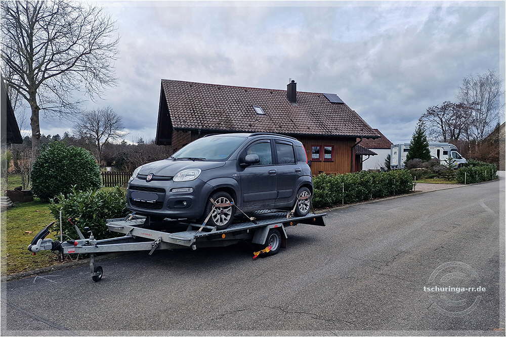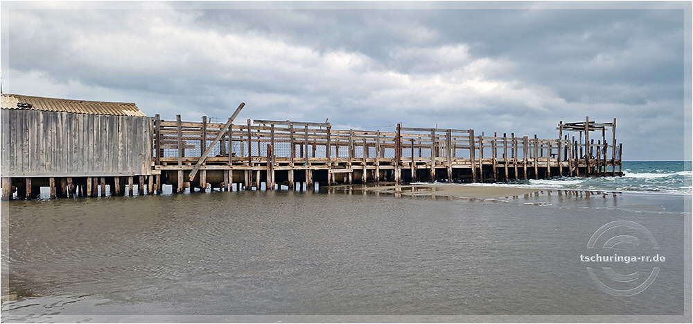Dritter "Faultag". Der Wind ist zwar etwas weniger, aber dafür eiskalt. 2° Temperatur, die sich wie -6° anfühlen. Es ist so kalt, dass man nach wenigen Minuten durchgefroren ist, trotz Mütze und Winterjacke. Nach dem Frühstück fahren wir kurz zum Aldi und dann schieben wir den Anhänger neben das Wohnmobil, wo er halbwegs im Windschatten steht. Friedbert muss die Anhängerreifen mit Luft auffüllen. Dafür nutzen wir, seit wir den Anhänger haben, den dem Fiat beiliegenden Kompressor. Der scheint wohl nicht für häufigen Dauereinsatz geeignet zu sein, denn er verweigert standhaft den Dienst. Der Motor läuft zwar, aber die Anzeige am Manometer verändert sich nicht. Da der rechte Reifen des Trailer arg wenig Luft hat, laden wir den Panda nicht auf, sondern fahren morgen früh erstmal zu einer Tankstelle. Der Fernseher wird heute auch nicht eingeschaltet, dafür ist es immer noch zu windig. |