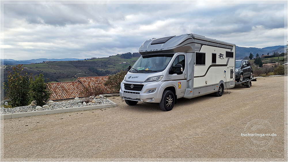 Auch heute sitze ich wieder hinter dem Lenkrad, denn Friedbert fühlt sich noch nicht fit genug, um zu fahren. Nach gut 80 km der erste Stopp bei einem Lidl. Einkaufen und auch die Mittagspause machen wir dort. Anschließend geht es weiter. Etwa 95 km liegen noch vor mir/uns. Im Laufe der Zeit merke ich meinen Rücken ziemlich deutlich. Pause lohnt sich nicht mehr, denn es sind nur noch gut 30 km. Die haben es allerdings in sich. Durch schmale Straßen mit gefühlt 1000 engen Kurven gilt es das Gespann mit knapp 13 Meter Länge durch zu fahren. Als wir endlich auf dem Stellplatz in Empurany ankommen, bin ich fix und fertig und muss feststellen, dass es auch mich erwischt hat. Es geht nichts mehr. Dank an die kleine Superspreaderin Rieke. |