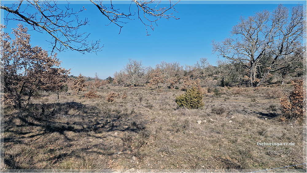 | Ausblick auf die Felsenkante nordwestlich des Stellplatzes | ||