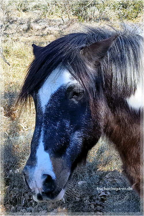 | Das zweite Pferdchen. Trotz der karg aussehenden "Koppel" sind beide Ponys ziemlich fett. Sie werden allerdings auch zugefüttert. | ||