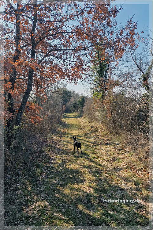 | Kleine Wanderung mit Yukon zwischen den Olivenbäumen | ||