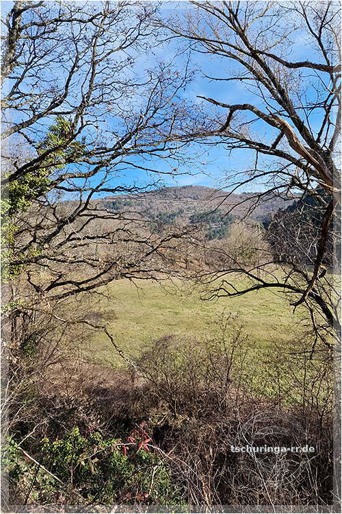 | Ausblick beim Spaziergang. Ganz links im Bild, hinter den Büschen, ist der Stellplatz. | ||