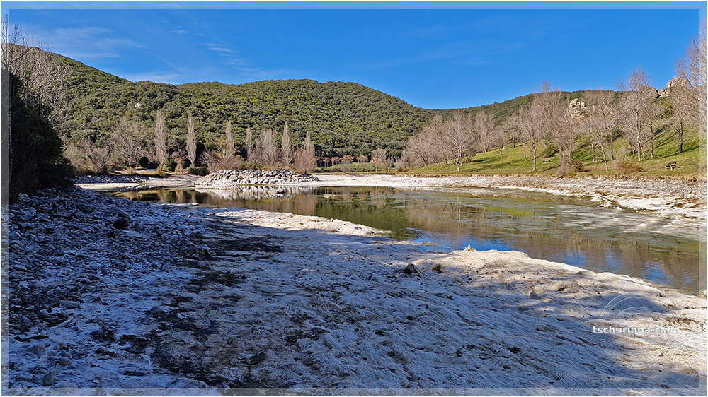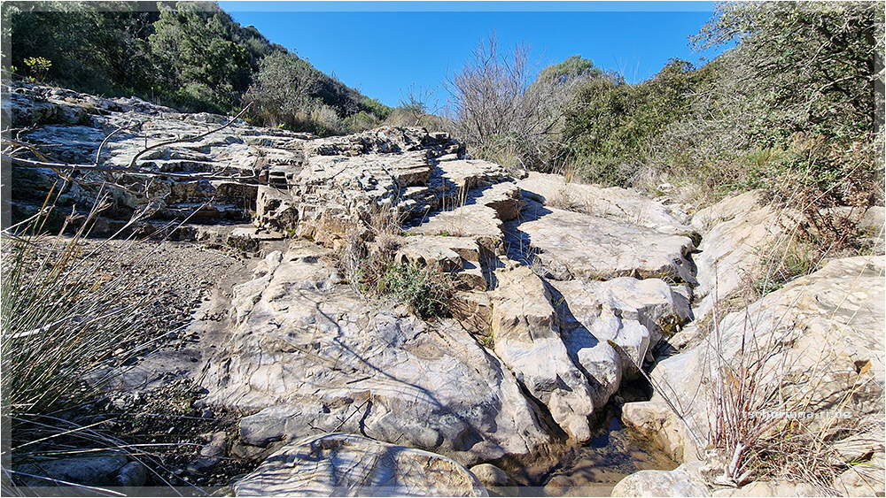 Concluses de Lussan unten Gorges de l'Aigiullo. In der Schlucht ist fast kein Wasser. Erstaunlich oder auch erschreckend für diese Jahreszeit. |