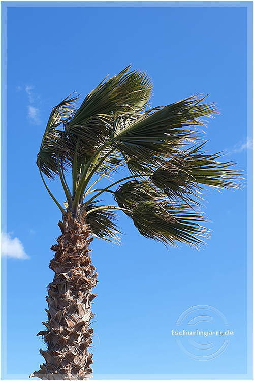 | Die Palmenwedel sind heute mehr waagerecht in der Luft | ||