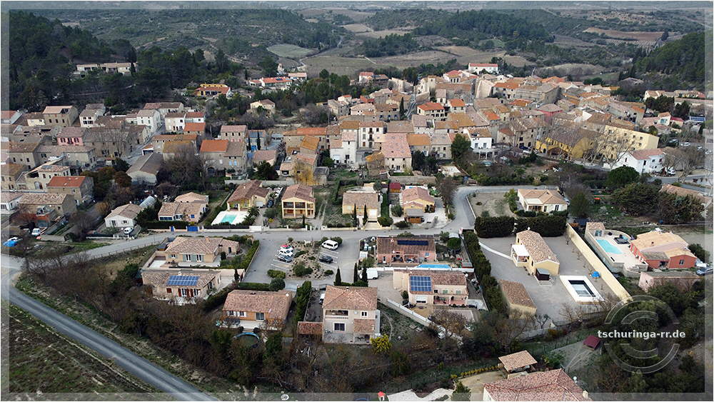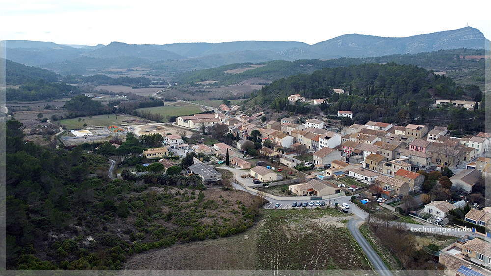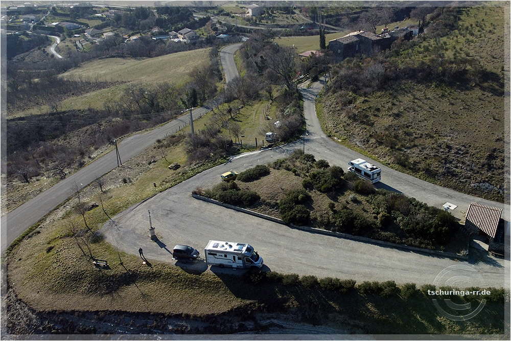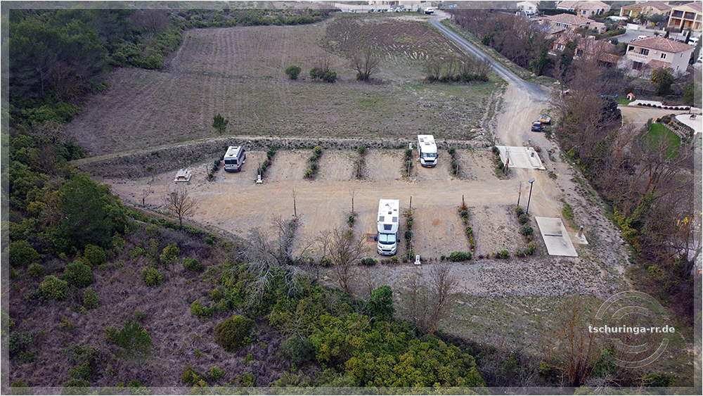 | Luftaufnahmen vom Stellplatz und dem Ort Villesèque-des-Corbière | ||