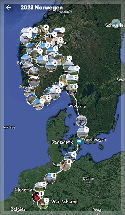 Übernachtungen gesamt: 107 Deutschland: 26 Norwegen: 75 Schweden: 6 Fahrstrecke: 6806 km Kosten für Diesel: 1305 € Durchschnittsverbrauch: 12,1 l/100 km Durchschnittspreis je Liter Diesel: 1,58 € LPG-Gas 220 Liter = 267 € Stell- und Campingplatzgebühren incl. Waschen/Trocknen: 345 € Maut: 584 € Lebensmittel, Hundefutter, Mitbringsel: 2 585 € ADAC Auslandkrankenschutz: 137 €
