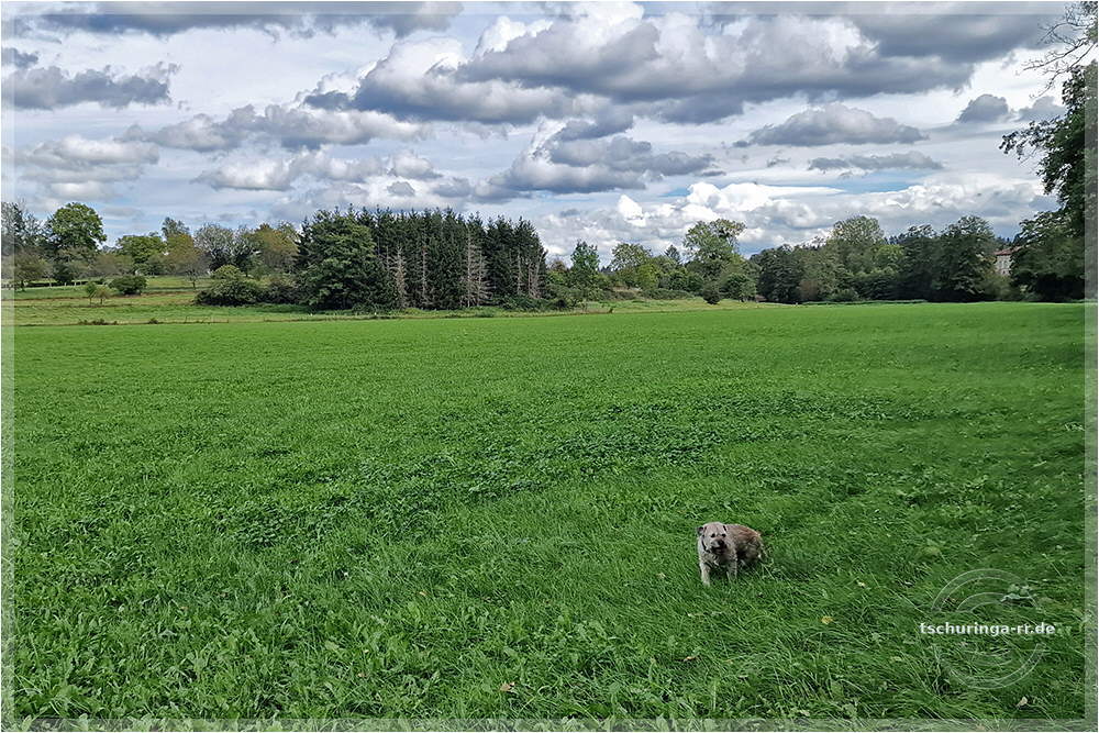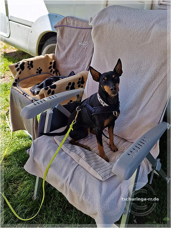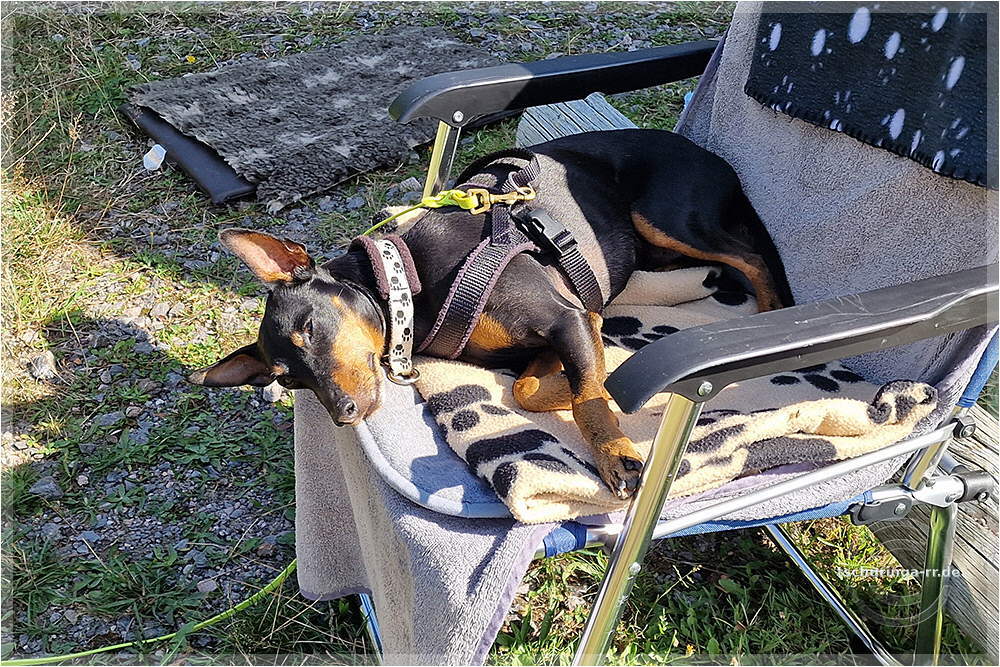 Es ist bewölkt und ein paar Tropfen kommen am Nachmittag auch mal. Wir sind ziemlich faul. Nach einer kleinen Vormittagsrunde geht es nachmittags noch mal zum See. Lennox macht uns etwas Kummer, weil seine Haufen immer noch nicht wirklich okay sind. Da er aber sonst fit ist, sehe ich das nicht als Notfall an und behandel ihn mit kolloidalem Silberwasser. In Lichtenberg ist das TÜV-Gutachten zur Erhöhung des Zuggesamtgewichtes eingetroffen. Das muss zeitnah in die Fahrzeugpapiere des Womos eingetragen werden. Also werden wir am Montag Richtung Deutschland starten, denn Friedbert hat am 13. Oktober einen Termin beim Straßenverkehrsamt für die Änderung ergattern können. Einen Tierarzttermin und einen bei der Physiotherapeutin von Yukon hab ich auch schon gemacht. Wenn wir dann doch nach Hause müssen...  |