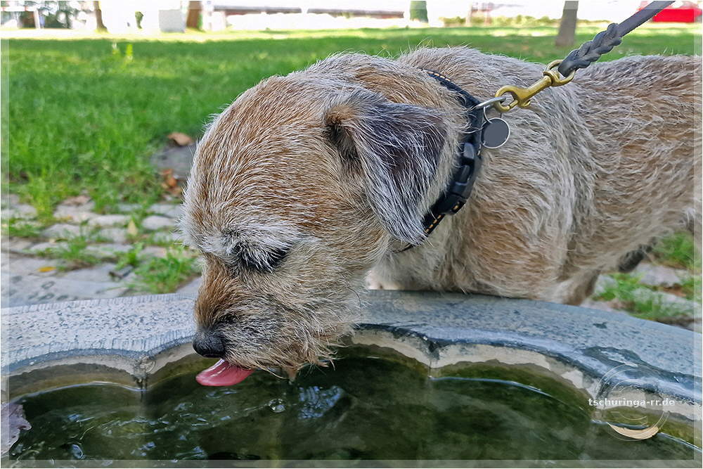 In der Nacht ist einiges an Regen runtergekommen und es hat ein paar Mal ordentlich gerummst, aber wirklich schlimm war es nicht. Wir warten auf unseren Wasserkocher, der heute geliefert werden soll. Unser 15 Jahre altes Schätzchen löst sich so langsam in seine Bestandteile auf. Die Anlieferung in der Postfiliale findet gegen 13:00 statt. Blöderweise hat die Poststelle ab 12:00 Uhr geschlossen. Also müssen wir mit der Abholung bis morgen warten. Das Wetter ist nach dem Regen auch recht warm und so laufen wir später mit den Hunden.  |