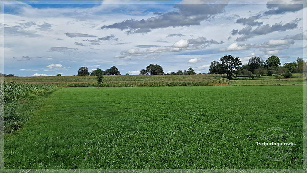 Ausblick von der "Pausenbank". Vor uns liegt frisch geschnittenes Gras. Ich liebe diesen Duft.  |