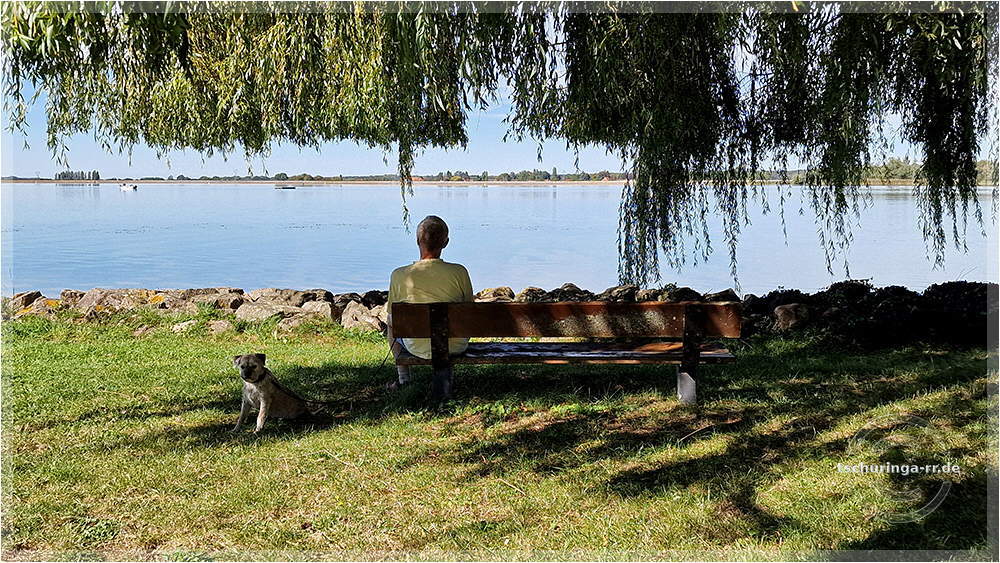 Auch heute lassen wir es bei etwas mehr Sonnenschein gemütlich angehen. Friedbert füllt beim Womo Öl nach, denn das hat sich gemeldet, dass es da Nachschub braucht. Außerdem pumpt er bei beiden Vorderrädern des Ducato und beim Anhänger Luft nach. Das Tiremoni meckert schon länger rum, dass vorne links zu wenig drin ist. Der Kompressor hat sich schon bezahlt gemacht. Später laufen wir noch mal ein Stück der Strecke, die wir vorgestern bei der Seeumrundung gegangen sind. Am See machen wir eine kleine Pause und dann geht es gemütlich wieder zurück.  |