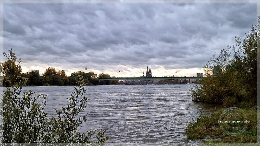 Das Wetter ist auch heute ziemlich durchwachsen. Meistens trocken, aber sehr bewölkt. Vormittags quatschen wir eine Zeit mit dem/n Nachbarn. Er hat neben seiner Arbeit über zwei Jahre ein 30 Jahres altes Feuerwehrfahrzeug zum Wohnmobil ausgebaut. Bei YouTube gibt es ein Video dazu. Das haben wir uns bereits angesehen und wir kommen schnell ins Gespräch. Seine Frau ist Schriftstellerin und sie planen, wenn der jüngste Sohn die Ausbildung beendet hat, mit Wohnmobil eine Weltreise zu machen. Australien, Neuseeland und vieles mehr sind in der Planung. Interessante Nachbarn, die obendrein noch super nett und ganz locker drauf sind. Nach Mittag baut Friedbert den Anhänger für Yukon auf und wir laufen entlang des Rheins bis zur Rheinpromenade, von dort aus ein Stück durch die Stadt und über den Domplatz wieder Richtung Wohnmobil.  |