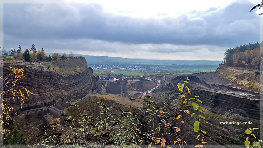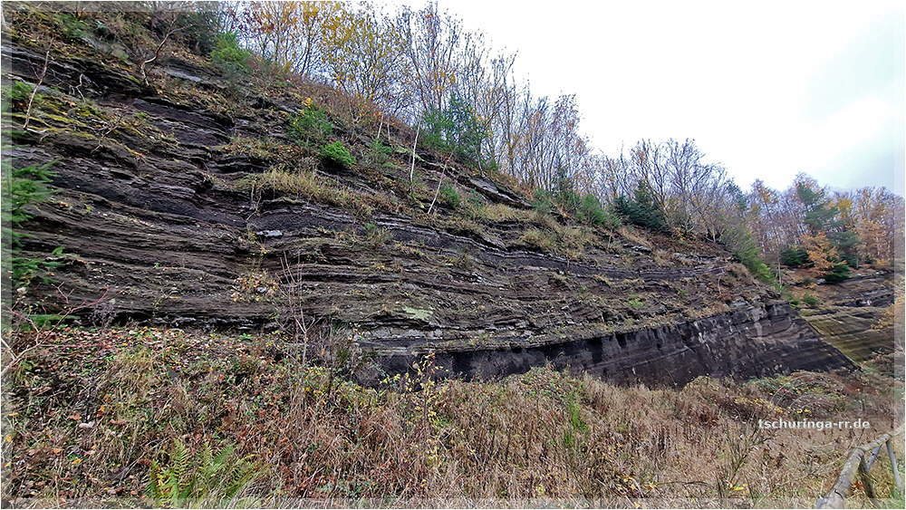 | Schweißschlackenbänke in der Abbauwand des Schlackenvulkans Alte Burg | ||