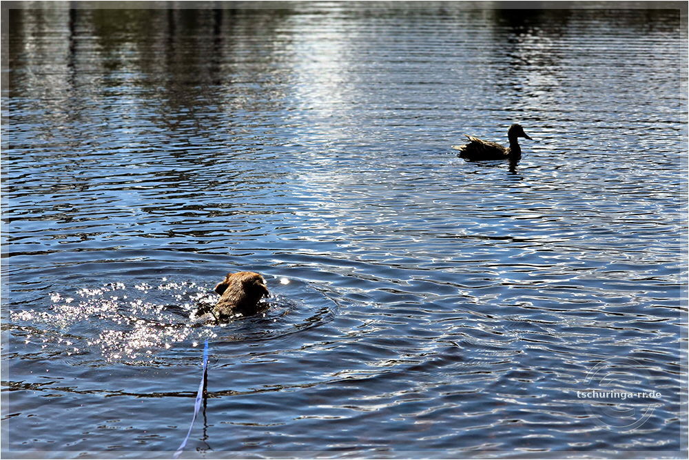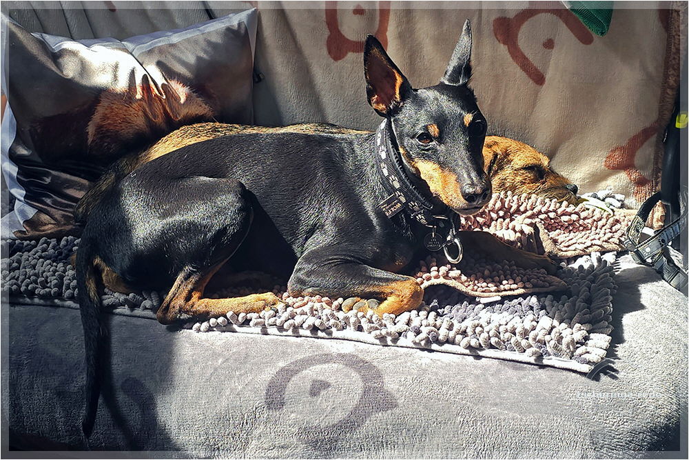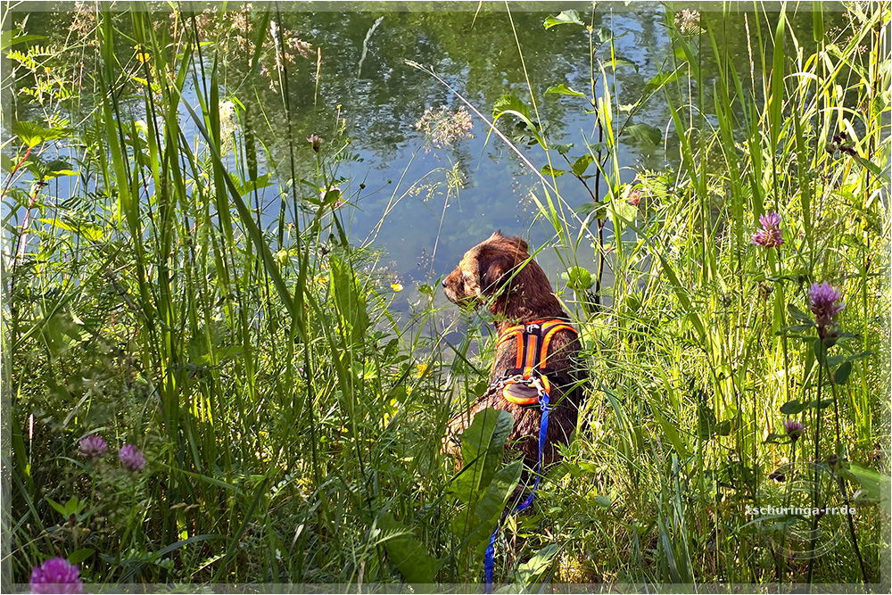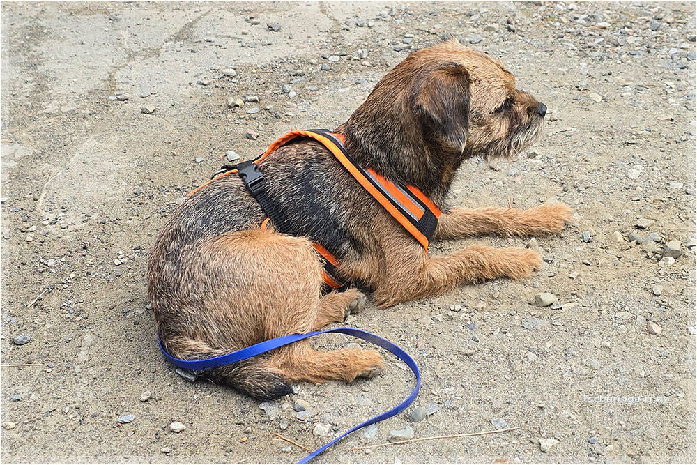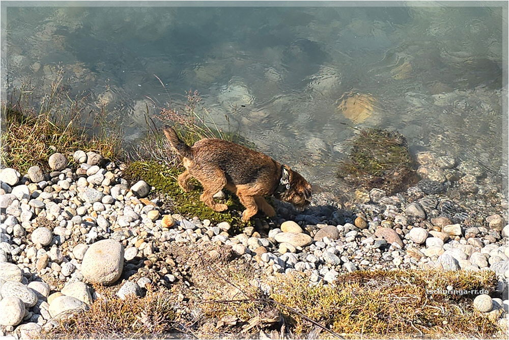 Wenn Frauchen fotografiert, macht Una Pause. |